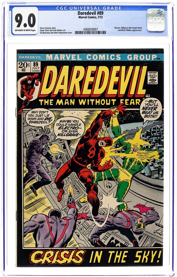 Cover pencils by Sal Buscema, inks by John Verpoortan. Crisis!, script by Gerry Conway, pencils by Gene Colan, inks by Tom Palmer; The Purple Man convinces Electro to take on Daredevil once again; guest starring the Black Widow and Killgrave. 36 pgs. Cover price $0.20. Cover price $0.20.