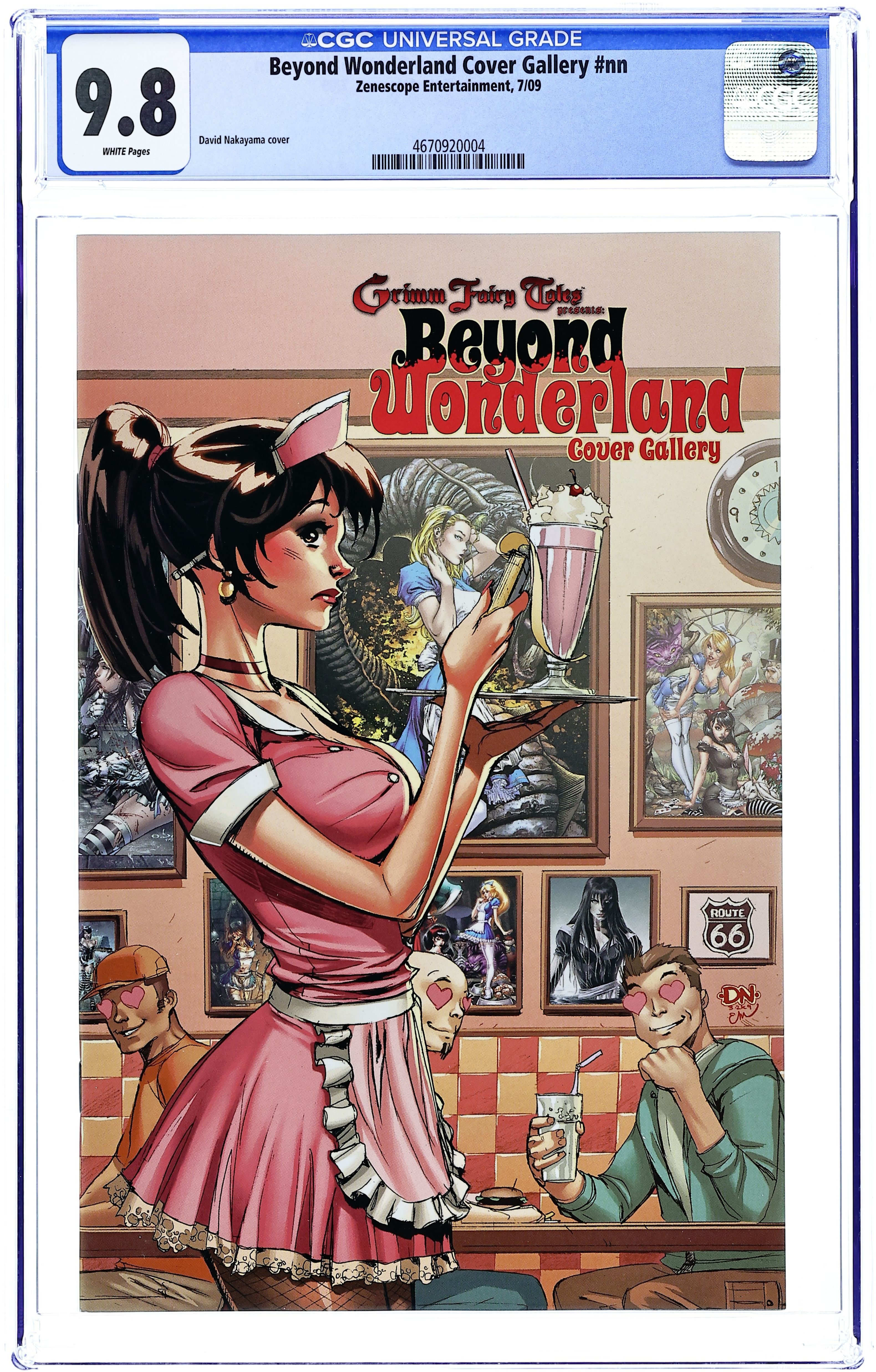 Malt Shop Regular Cover by David Nakayama & Emily Warren. Offered for the first and ONLY time ever is the critically acclaimed hit indie comic BEYOND WONDERLAND cover gallery. Features over 30 covers by some of the biggest names in comics from J. Scott Campbell, David Finch, Eric Basaldua, David Nakayama, Joe Benitez, Al Rio, Nei Ruffino, Billy Tucci and Talent Caldwell as well as many others. This stunning gallery includes all variants, exclusives, and reprint covers from one of the biggest selling titles of 2008. These covers will not be available or reprinted anywhere else so get your copy while you still can. Cover price $3.99.