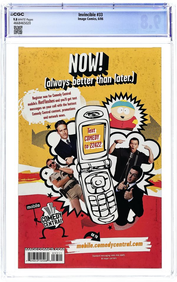 Written by ROBERT KIRKMAN. Art & cover by RYAN OTTLEY & BILL CRABTREE. The Re-animen strike! After months of careful planning and preparation D.A. Sinclair unleashes his undead automations on Upstate University. Luckily, a young man named Mark Grayson just happens to be attending classes there. He'll be able to do something to stop them - he's INVINCIBLE! 32 PAGES FC Cover price $2.99.