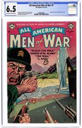 Edited by Whitney Ellsworth. Cover by Irv Novick. Stories by Robert Kanigher, Irv Novick, Joe Giella, Bill Woolfolk, Gene Colan, Henry Boltinoff, Ed Herron, Jerry Grandenetti, Sy Barry, Ed Herron, and Bernard Sachs. Adventure tales of war and the military, including some humor—go into combat with All American Men of War! 36 Pages, Full Color. Cover price $0.10.