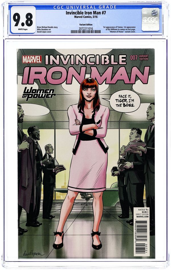 Ends Apr 17 8:41 PM CST Bid History no bids Minimum Bid $1 Your Secret Max Bid If you'd like to bid, please log in or register. Limited 1 for 25 Retailer Incentive Variant Cover. Written by Brian Michael Bendis. Art by Stefano Caselli. Cover by Jeff Dekal. From the violent streets of Chicago, a new armored hero rises! Clad in her very own Iron Man armor, Riri Williams is ready to show the Marvel Universe what she can do as the self-made hero of tomorrow. But is she ready for all the problems that come with stepping into Iron Man's jet boots? Where's a genius billionaire playboy philanthropist when you need one? 28 pages, full color. Rated T+ Cover price $3.99.