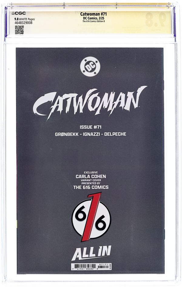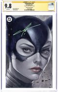 Comic Mint exclusive variant by Shannon Maer. Written by Paul Dini, Ann Nocenti, Tom King, Jeff Parker, Liam Sharp, Mindy Newell, Chuck Dixon, Will Pfeifer, Ram V and Ed Brubaker. Art by Emanuela Lupacchino, Robson Rocha, Mikel Janin, Jonathan Case, Liam Sharp, Lee Garbett, Kelley Jones, Pia Guerra, Fernando Blanco, Cameron Stewart, Mick Gray, Daniel Henriques and Danny Miki. Our gal Catwoman is turning 80 next year (and looking very good, if we meow say), and DC is celebrating with nothing less than a huge soiree, invite only, packed with creators who mean the most to her and to whom she means the most! Stories featured in this 100-page spectacular include a tail -- sorry, tale -- that takes place at the end of the Brubaker/Stewart Catwoman run, in honor of artist Darwyn Cooke. Also, Catwoman is caught by an exotic cat collector, runs into a wannabe thief trying to prove himself as her apprentice, encounters a mystery involving memorabilia from alternate continuities, and of course some Bat/Cat fun. Featuring: "Skin the Cat" by Paul Dini, Emanuela Lupacchino and Mick Gray; "Now You See Me" by Ann Nocenti, Robson Rocha and Daniel Henriques; "Helena" by Tom King and Mikel Janin; "The Catwoman of Earth" by Jeff Parker and Jonathan Case; "A Cat of Nine Tales" by Liam Sharp; "Little Bird" by Mindy Newell and Lee Garbett; "Born to Kiln" by Chuck Dixon, Kelley Jones and Danny Miki; "Conventional Wisdom" by Will Pfeifer and Pia Guerra; "Addicted to Trouble" by Ram V and Fernando Blanco; and "The Art of Picking a Lock" by Ed Brubaker and Cameron Stewart. Plus pin-ups by Babs Tarr, Ty Templeton, Steve Rude, Tula Lotay, Tim Sale, Jim Balent and Jae Lee. 96 pages, full color. Rated T+