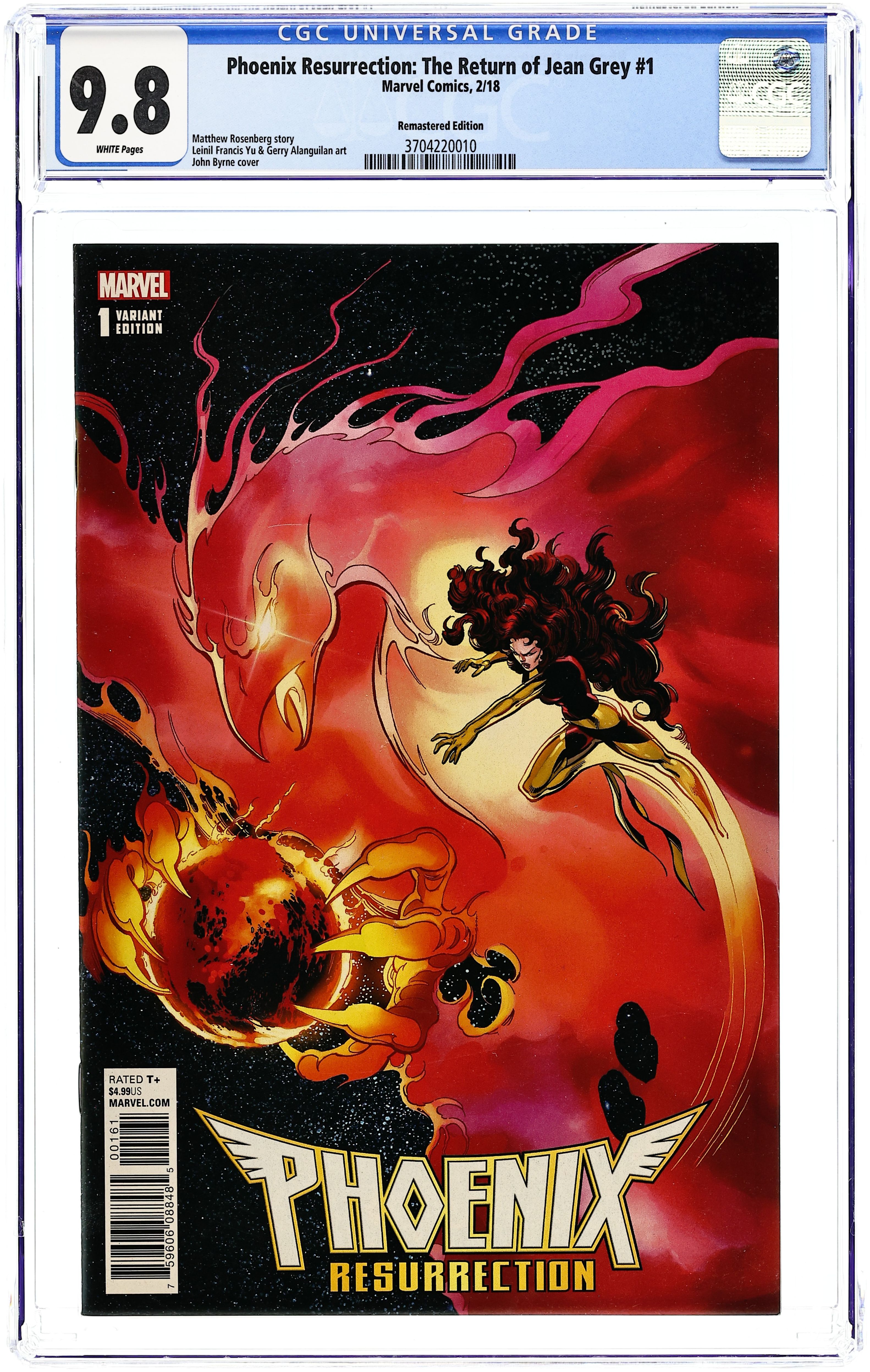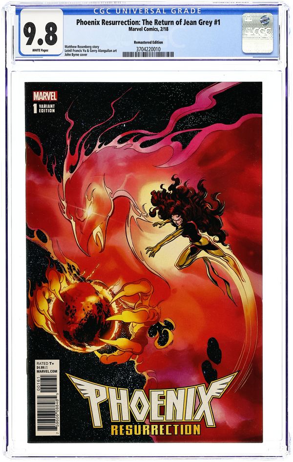 Remastered Edition Variant Cover by John Byrne. Written by Matthew Rosenberg. Art by Leinil Francis Yu. She will return, like a Phoenix from the ashes. Years ago, Jean Grey died and the X-Men mourned her. Since then, the world has changed, her teammates have lived without her and died without her. And now, when strange events start happening all over the world, those teammates can only come to one conclusion - the one true Jean Grey is back! 36 pages, full color. Rated T+ Cover price $4.99.