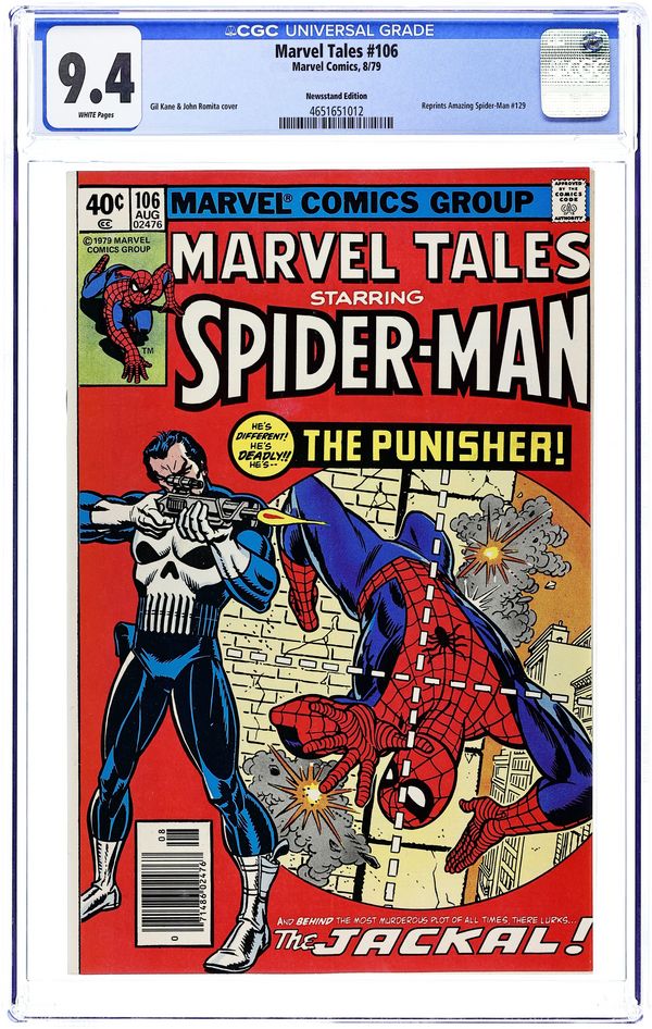Newsstand Edition. Reprints Amazing Spider-Man 129. First appearances of the Punisher and the Jackal in "The Punisher Strikes Twice." Script by Gerry Conway, pencils by Ross Andru, inks by Frank Giacoia and Dave Hunt. Gil Kane cover. Cover price $0.40.