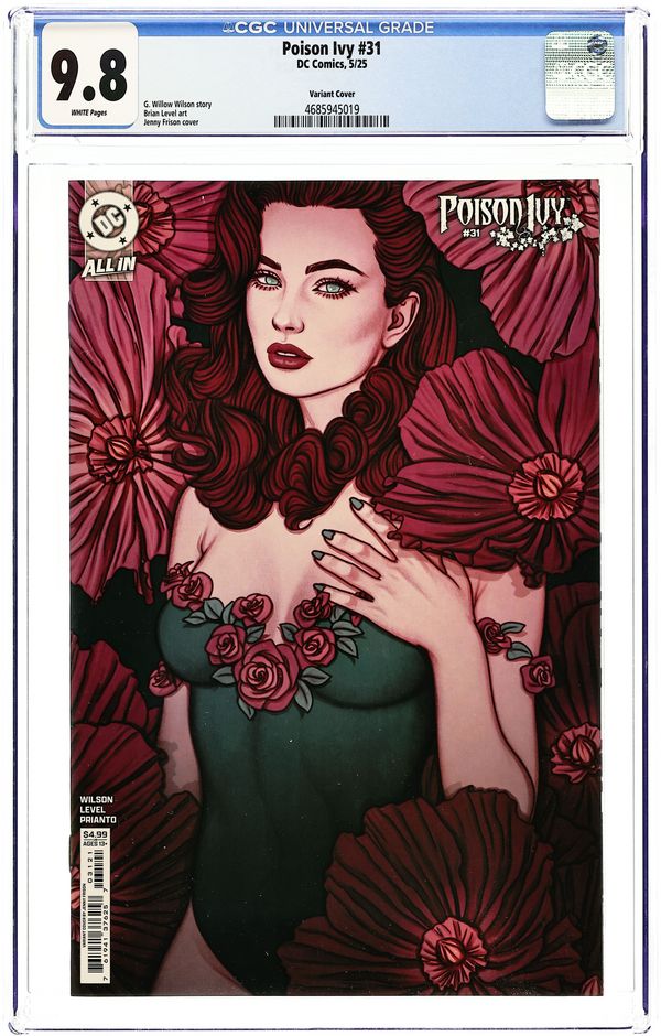 Limited 1 for 50 Retailer Incentive Variant Cover. Written by G. Willow Wilson. Art by Marcio Takara. Cover by Jenny Frison. As she contends with a brand-new life and restored powers, Poison Ivy resumes her wrathful and just war for the balance of the natural world. Her latest mission: to restore life to the wetlands that Gotham City's industrial waste has destroyed. But her goals are upended when she unintentionally resurrects an ancient place from Gotham's past and with it...something hungry. Meanwhile, cleansing fires burn across America, seeking to rid the country of human influence. And somehow, Poison Ivy is to blame. Join the GLAAD Media Award-winning team of G. Willow Wilson and Marcio Takara for the third year of their beautiful, bleak, and blistering series. You won't want to miss out. Cover price $4.99.
