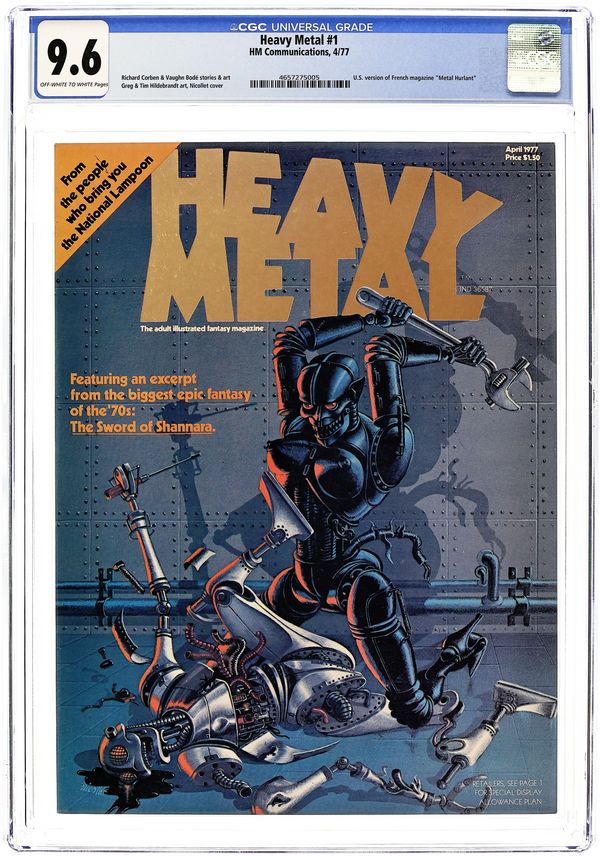 Newsstand Edition. The adult illustrated fantasy magazine. Cover art by Boris Vallejo. Shoe for All the Wrong Reasons, script and art by Doug Beekman. Moe, Larry, and Joe article by Mike Barson, art by Joe Kubert. Ranxerox, script by Stefano Tamburini, art by Gaetano Liberatore. Meets the Toast of Europe starring Tex Arcana, script and art by John Findley. Planet of Gold--The Third Incal, script by Alexandro Jodorowsky, art by Jean Giraud (as Moebius). I'm Age, script and art by Jeff Jones (one page). Kamikaze, script and art by Pepe Moreno. Salammbo II: Carthage, script and art by Philippe Druillet. Wurtham View 2000 Part Two: Face of the Past, script and art by Angus McKie. Living in the Ice-Age featuring El Borbah, script and art by Charles Burns. Roger Corman: More Than Just King of the Bs article. Valentina the Pirate, script and art by Guido Crepax. Rock Opera, script and art by Rod Kierkegaard, Jr. April, 1984, issue 85. 100 pgs. Cover price $2.50. Cover price $2.50.