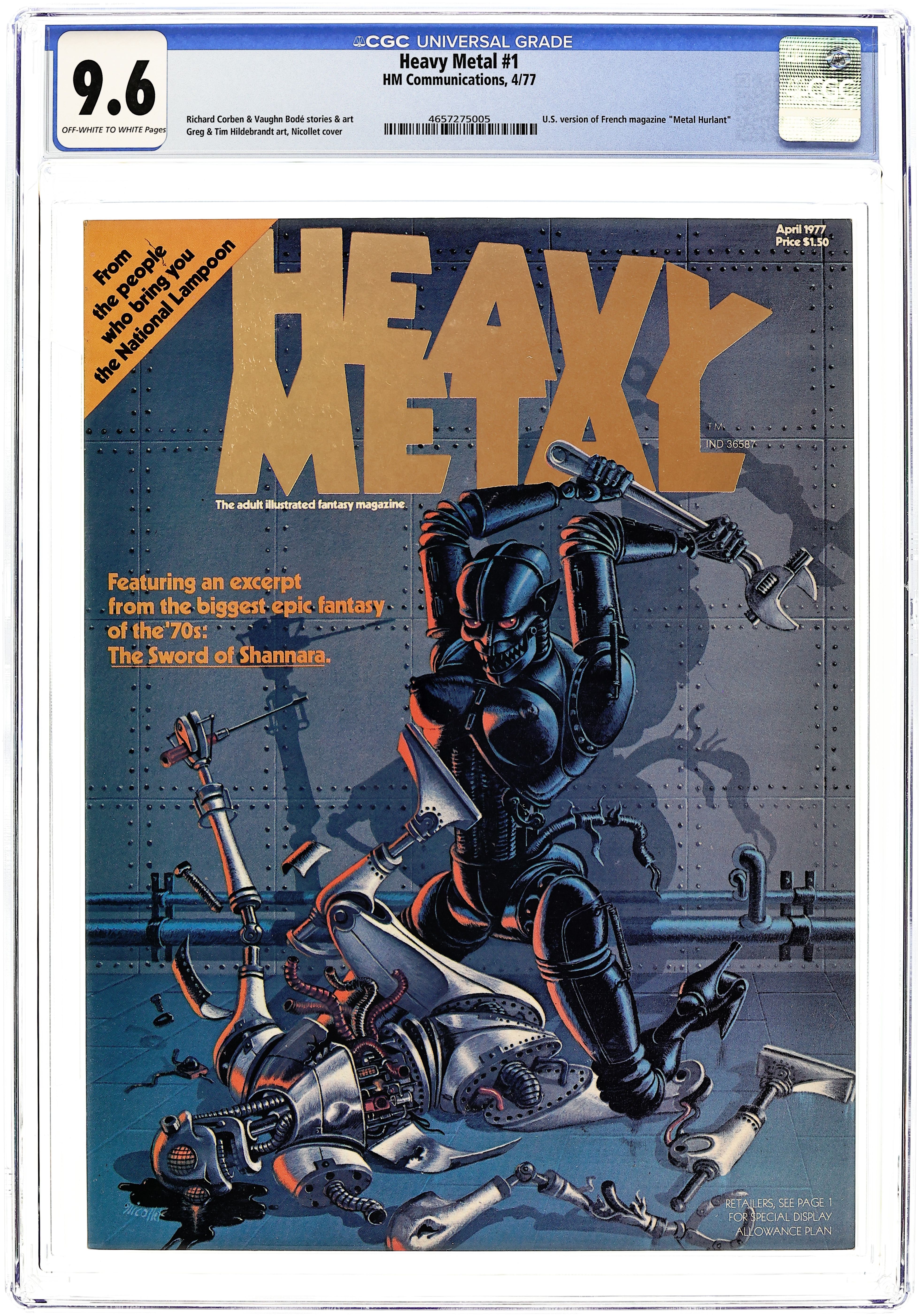 Frazetta cover and interview, November 1990, issue 129. Dubbed "The adult illustrated fantasy magazine," Heavy Metal also publishes tales of horror, science fiction, and adventure. This issue includes the following stories: Dieter Lumpen: Enemies in Common by Ruben and Zentner; The Time Zuck Company by Zeliko Pahek; Semel Insanivimus Omnes AKA The Prisoner by Angus McKie; Bonnie & Clyde by Rebecca Fletcher and Tim Fletcher; Modern World by Peter Kuper; and Behind the Cursed Curtain by Rick Geary. Includes interview with Frank Frazetta. Cover art by Frazetta. Cover price $3.95.