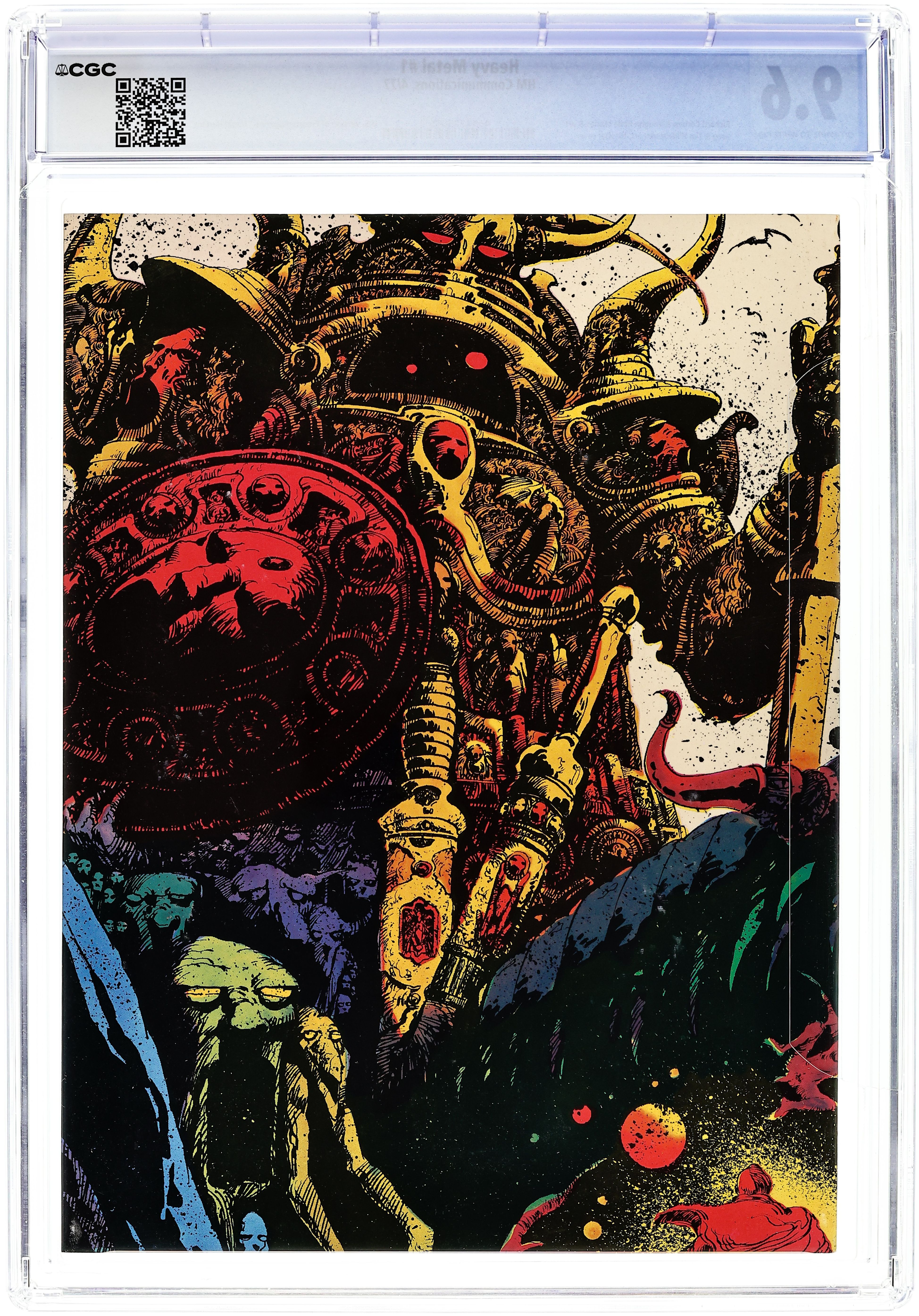 Cover by Joseph Zavilinski. Stories and Art by Hermann, Miguel Angel Prado, Rick Geary, Peter Kuper, Theureau & Galliano, Alfonso Azpiri, Varillo & Montana, Daniel Torres and Segura & Jose Ortiz. The illustrated fantasy magazine. In this issue: "The Towers of Bois-Maury"; "The Night"; "The General Store"; "The Wall," a story about Donald Trump building a wall in New York; "Brief Encounter"; "Lorna"; "Home Sweet Home"; "Heroes"; "Attila"; and "Fallen Angel"! Plus: H.R. Giger gallery. 112 pages, PC/PB&W. Cover price $3.95.