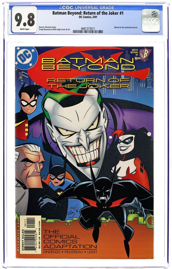 Direct Edition. Story by Darren Vincenzo. Art and Cover by Craig Rousseau. We've all learned that in the future Gotham City of BATMAN BEYOND, young Terry McGinnis has assumed the mantle of the bat. As the new Batman and protector of Gotham, he's had to face many strange new villains and even more bizarre challenges ? gathering a Rogues Gallery of his very own. But nothing could have prepared him for the return of original Batman Bruce Wayne's greatest archenemy ? the psychopathic Joker! And what happens when the Clown Prince of Crime lets loose in a future that seems all new and ready for the taking? Cover price $2.95.