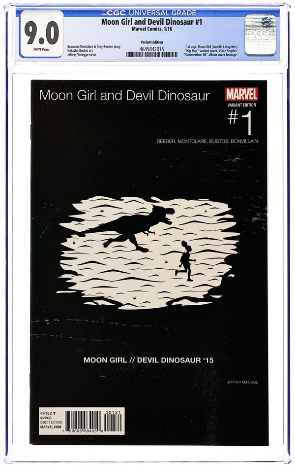 Written by Amy Reeder and Brandon Montclare. Art by Marco Failla.Cover by Jamal Campbell. NEW STORY STARTS NOW! What's next for Moon Girl and Devil Dinosaur? The all new, all different, MOST AMAZING Marvel Team-Up continues... Face to face with the Terrigen Cloud that could turn her Inhuman, Lunella Lafayette's world is about to turn upside down! Now more than ever, she'll have to rely on smarts and keep a cool head! Meanwhile, a new boy in school has moved to town from far, far away…but why is he so interested in Lunella? Plus, the most wanted T-Rex in NYC is running out of places to lie low. Part One of 'Cosmic Cooties' begins here!!! 32 pages, full color, Rated T Cover price $3.99.