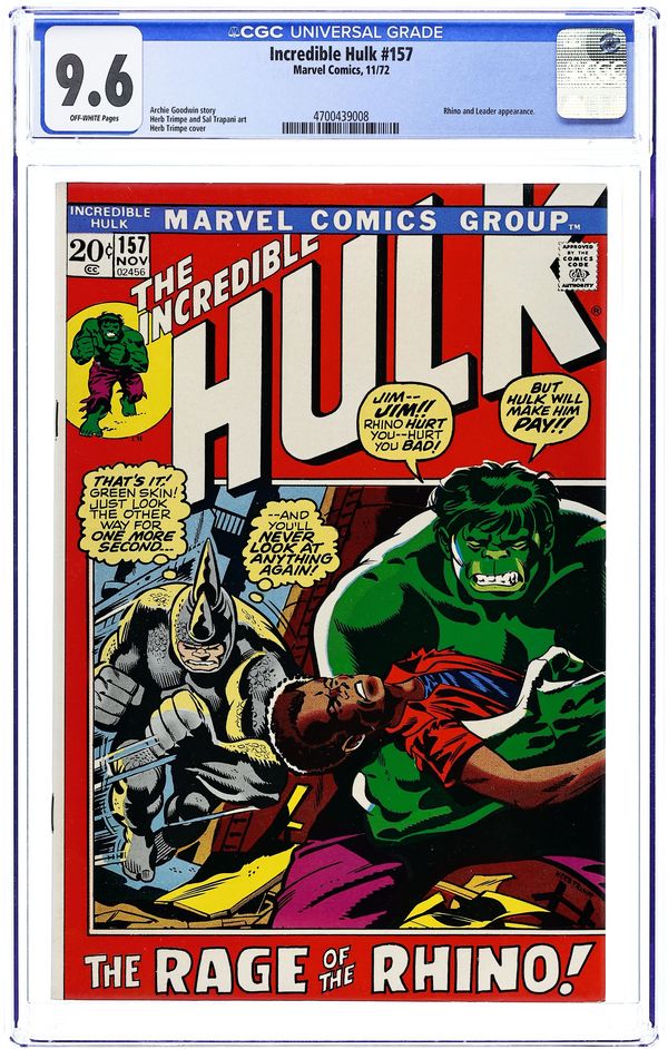 Cover art by Herb Trimpe. Name My Vengeance: Rhino!, script by Archie Goodwin, pencils by Herb Trimpe, inks by Sal Trapani; The Leader places his mind in the Rhino's body and attacks the Hulk on the eve of Talbot and Betty's wedding. 36 pgs. $0.20. Cover price $0.20.