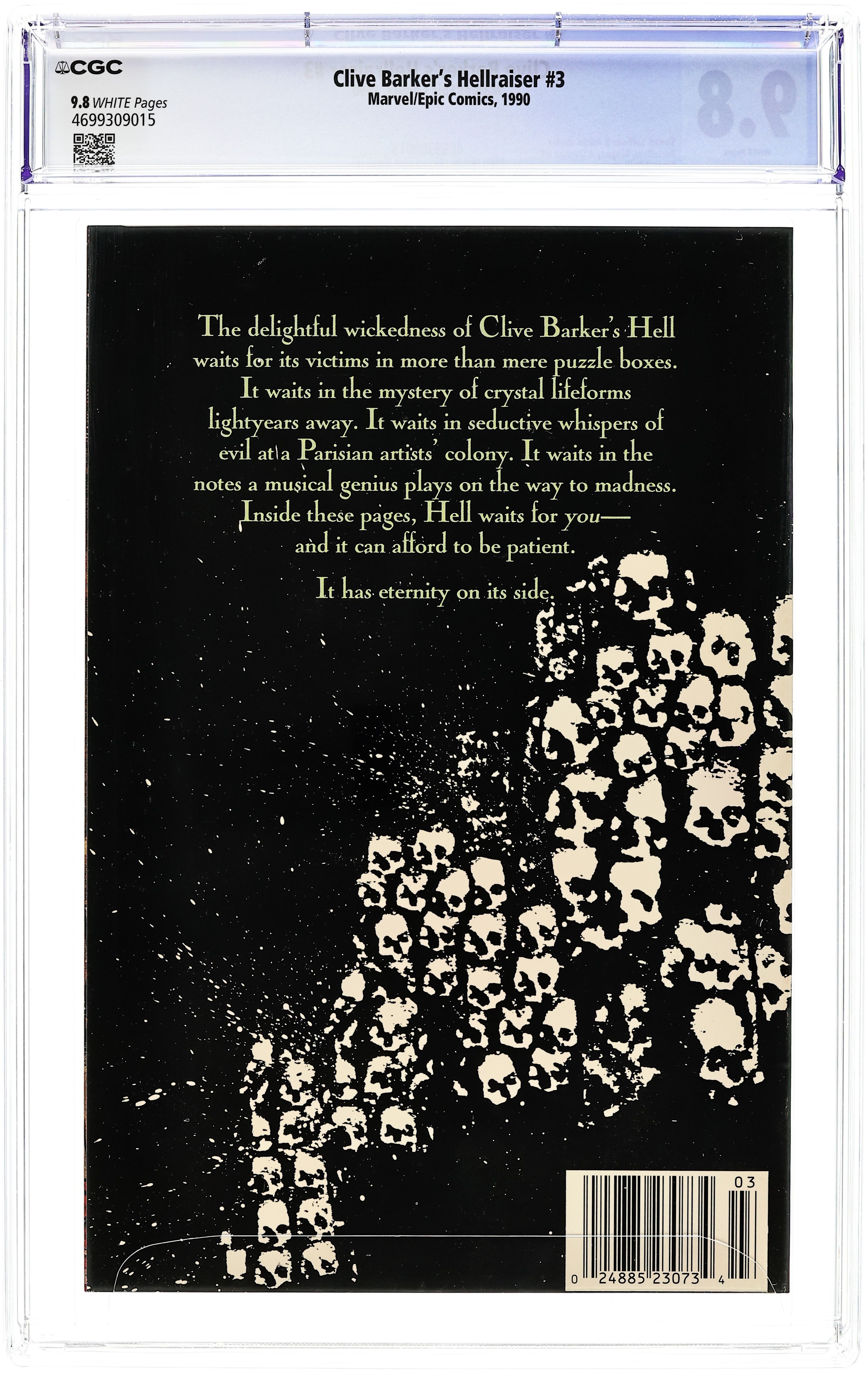 Cover by Kevin O'Neil. The delightful wickedness of Clive Barker's Hell waits for its victims in more than mere puzzle boxes. It waits in the mystery of crystal lifeforms lightyears away. It waits in seductive whispers of evil at a Parisian artists' colony. It waits in the notes a musical genius plays on the way to madness. Inside these pages, Hell waits for you - and it can afford to be patient. It has eternity on its side. Includes Tales by Jan Strnad, Steve Buccellato, Stan Drake, R.J.M. Lofficier, John Ridgway, Peter Atkins, Dave Dorman and Lurene Haines. 64 pages, FC. Cover price $4.95.