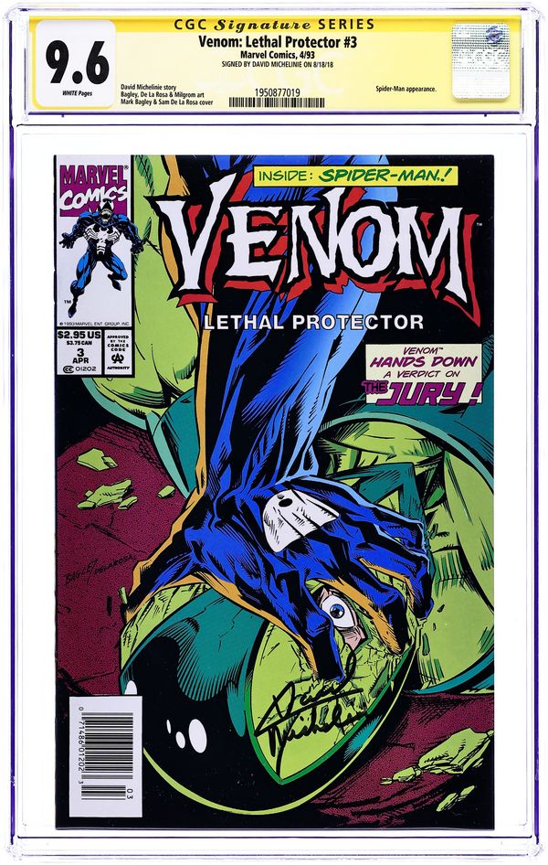 Direct Edition. Cover by Mark Bagley and Sam de la Rosa. Lethal Protector Part 2: War and Pieces, script by David Michelinie, pencils by Mark Bagley, inks by Al Milgrom and Sam de la Rosa; Venom is rejected by the underground dwellers he helped out; Spidey goes to Eddie's father for answers about his son; The Jury comes after Venom for killing its leader's son. 36 pgs., full color. $2.95. Cover price $2.95.