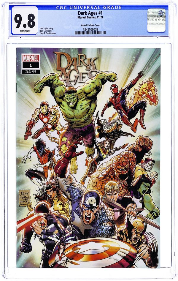 Variant Cover by Tony Daniel. Cover homage to Marvel Super Heroes Secret Wars (1984) #1. Written by Tom Taylor. Art by Iban Coello. This is what the Watcher has been watching for! A danger older than the Earth threatens everything. For once, the heroes who have saved the planet so many times are almost powerless in the face of it. X-Men and Avengers assemble. Spider-People and Fantastic Four come together. Heroes for Hire fight alongside Champions. None of it will be enough. The lights are about to go out. The world outside our window...is about to end. An all-new saga of the Marvel Universe as you've never seen it before from Tom Taylor and Iban Coello! 36 pages, full color. Rated T+ Cover price $4.99.