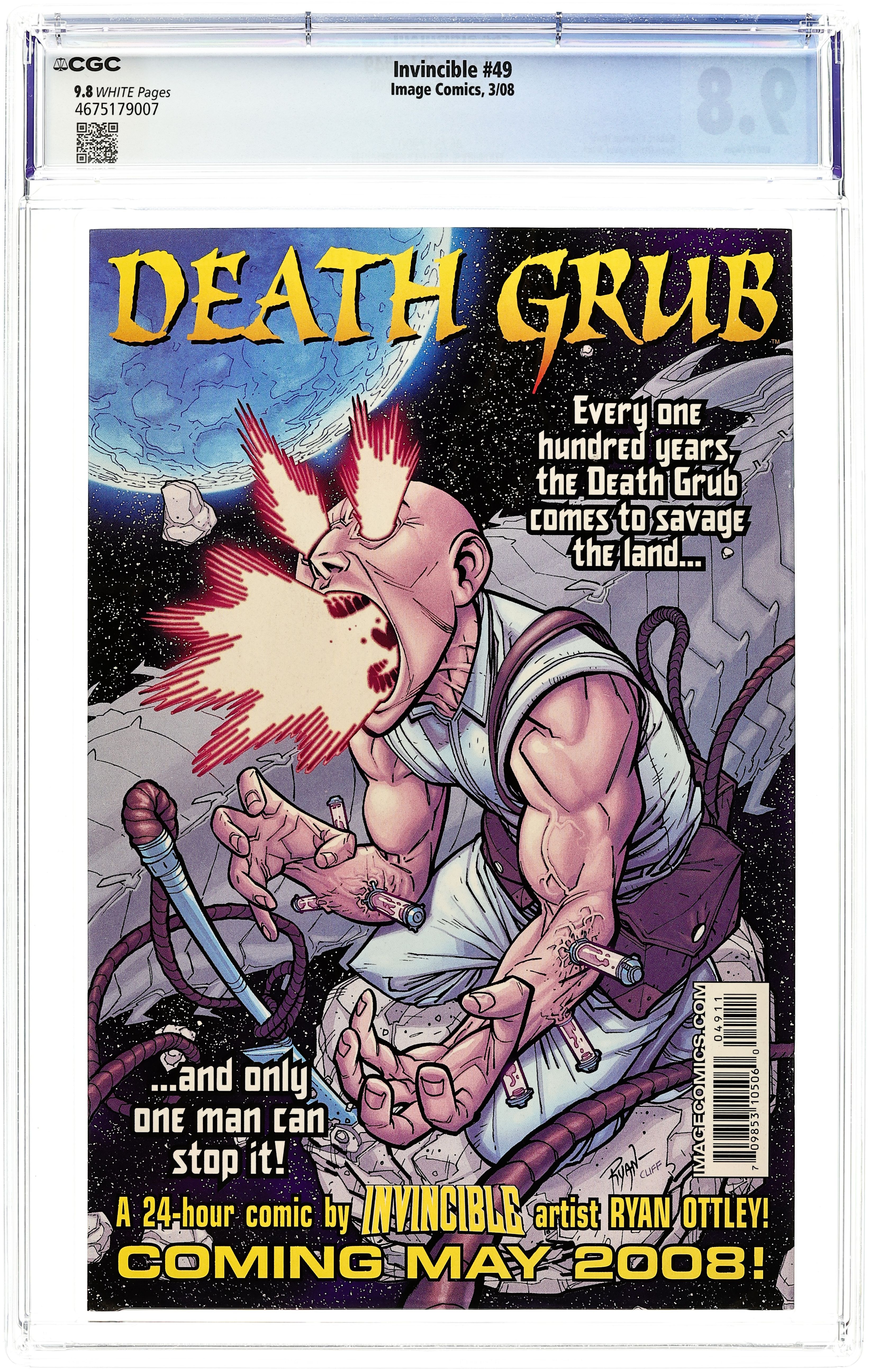 Written by ROBERT KIRKMAN. Art and Cover by RYAN OTTLEY and FCO PLASCENCIA. INVINCIBLE WAR: AFTERMATH! CONQUEST is here. Invincible is confronted with the most dangerous threat he's ever faced. He will not come out of this unscathed. This issue is not to be missed. 32 pages, full color. Cover price $2.99.