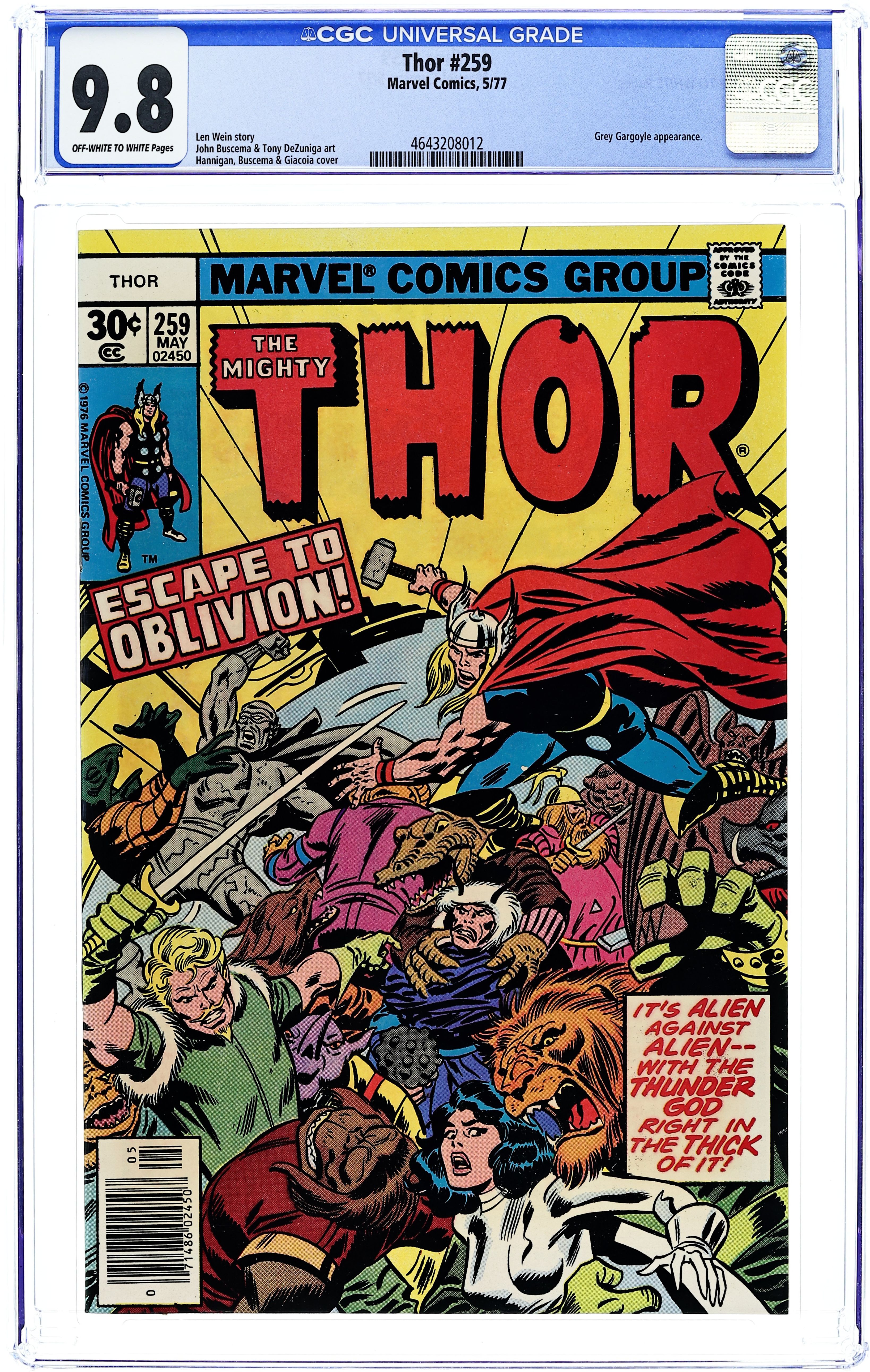 Cover pencils by Jack Kirby, inks by Joe Sinnott. "The Throne and the Fury!", script by Len Wein, pencils by John Buscema (breakdowns) and Tony DeZuniga (finished art), inks by Tony DeZuniga; Plot assist by Marv Wolfman; Thor goes to try and talk to Odin, but is prevented by the palace guards and a mystic field that even Mjolnir cannot penetrate; Odin has his men move the Odinsword to the throne room, where he can pull it from the scabbard at a moment's notice; The group goes to seek Karnilla's help in breaching the mystic barrier; Thor barely manages to get through before it reseals itself; Thor then confronts Odin, only to have him reveal that it's not really Odin at all - it's Mangog sitting upon the Odinsword. Appearances by Balder, Hogun, Fandral, and Volstagg. The letters page contains Marvel Value Stamp series B #98 (Fantastic Four). 36 pgs., full color. $0.25. Cover price $0.25.