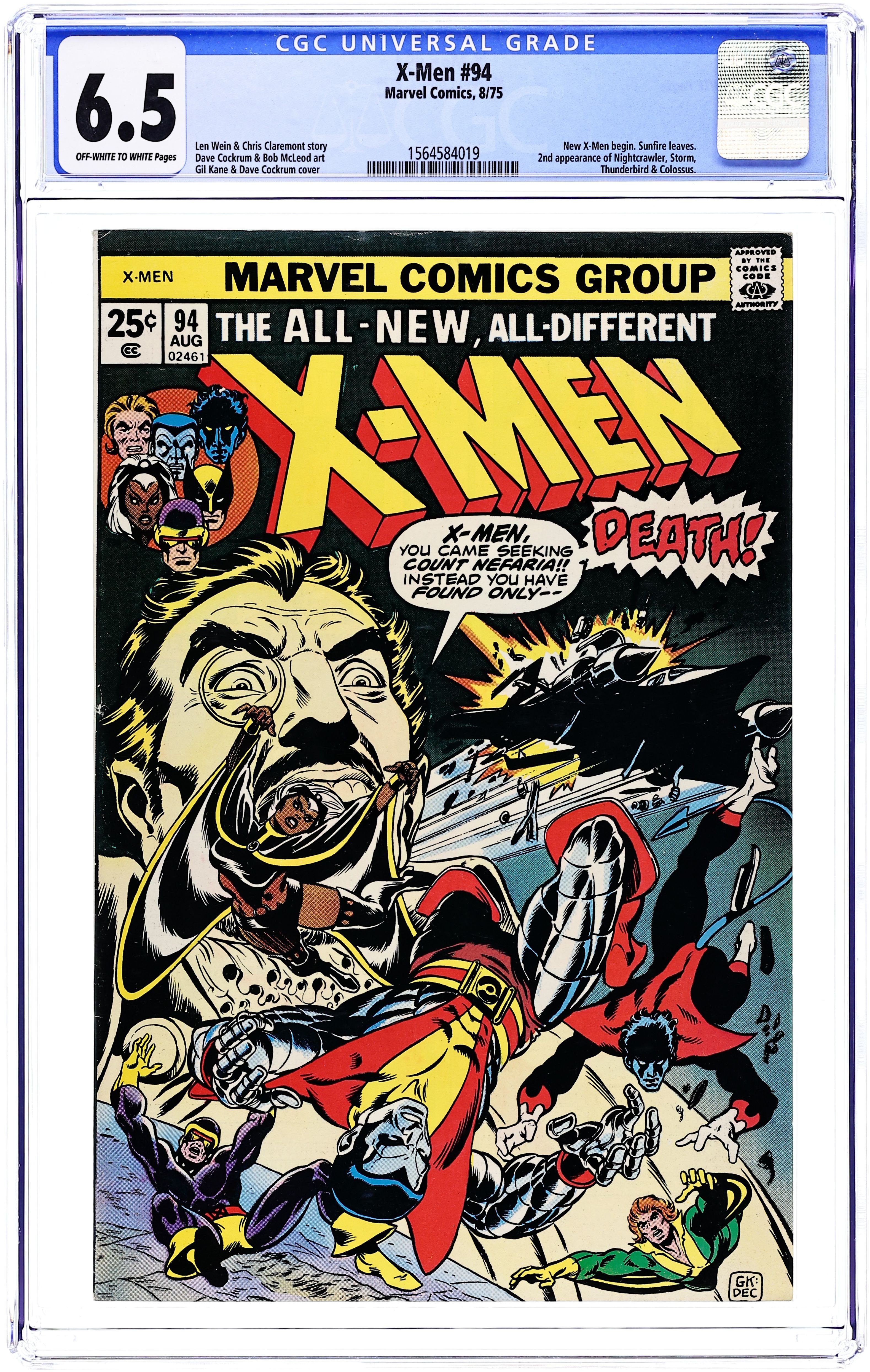 "The Doomsmith Scenario!" Part 1 of 2. Story by Chris Claremont and Len Wein. Art by Dave Cockrum. It is a changing of the guard at Xavier's School for the Gifted. Professor X's original students are replaced by an all new team of X-Men. The demonic acrobat Nightcrawler, the weather controlling Storm, the iron-skinned strongman - Colossus, the shrieking Banshee, the tribal warrior - Thunderbird, and the dangerous Wolverine have been gathered together from the four corners of the world to defend mankind from the forces of evil, and to vanguard Xavier's dream of mutants and humans co-existing in peace and harmony. However, their first mission may be their last. The new X-Men must stop the sinister madman Count Nefaria who has seized control of the United States' strategic missile force. 36 pgs. Cover price $0.25.