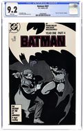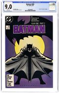 First Printing. Direct Edition. Batman Year One, Chapter Three: "Black Dawn". Part 3 of 4, continued from the previous issue. Story concludes next issue. An injured and cornered Batman is up against the police, James Gordon crosses a line, and Selina Kyle becomes Catwoman. Script by Frank Miller, art by David Mazzucchelli. Mazzucchelli cover. 1st printing. NOTE: Most issues from 397-432 were reprinted in 1989 and sold in multipacks. These 2nd and 3rd prints have back cover ads dated 1989. 36 Pages, Full Color. Cover price $0.75.