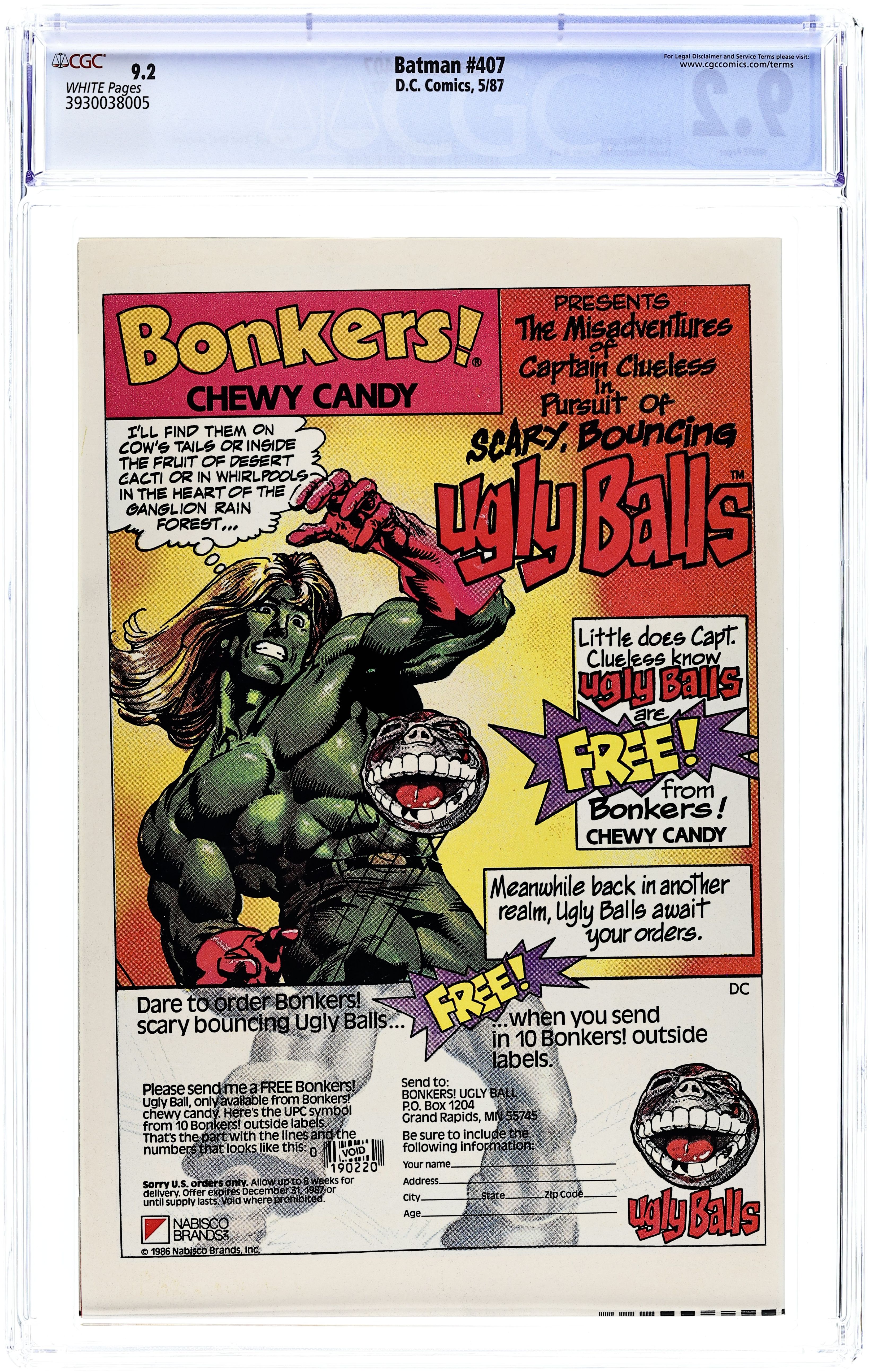 1st printing. Direct Edition. In "Victims!", Batman is affected on a personal level when a string of murders plague Gotham. Story thread picks up again in #421. Script by Jim Starlin, pencils by Jim Aparo, inks by Mike DeCarlo. Aparo cover. 36 Pages, Full Color. NOTE: Most issues from 397-432 were reprinted in 1989 and sold in multipacks. These 2nd and 3rd prints have back cover ads dated 1989. 36 Pages, Full Color. Cover price $0.75.
