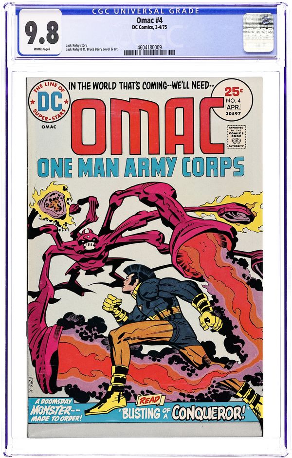"The Busting of a Conqueror." Ruthless dictator Kafka goes to trial (thanks to Omac), but is confident that his avenger will free him. Script and pencils by Jack Kirby, inks by D. Bruce Berry. Cover by Kirby and Berry. Cover price $0.20.