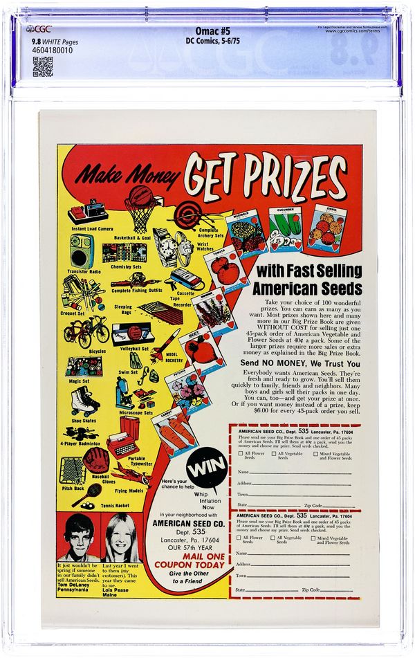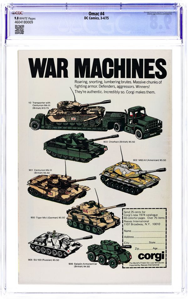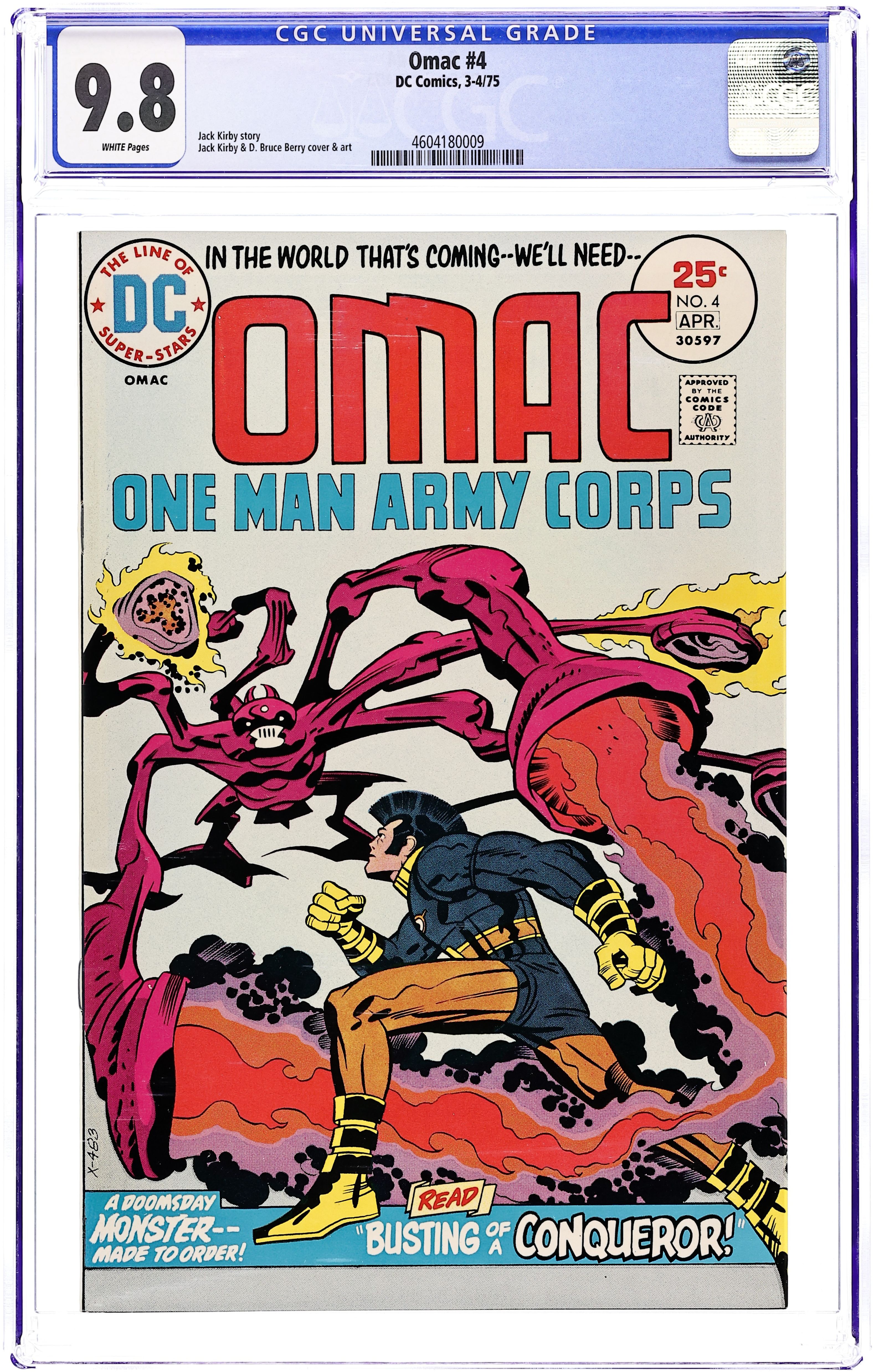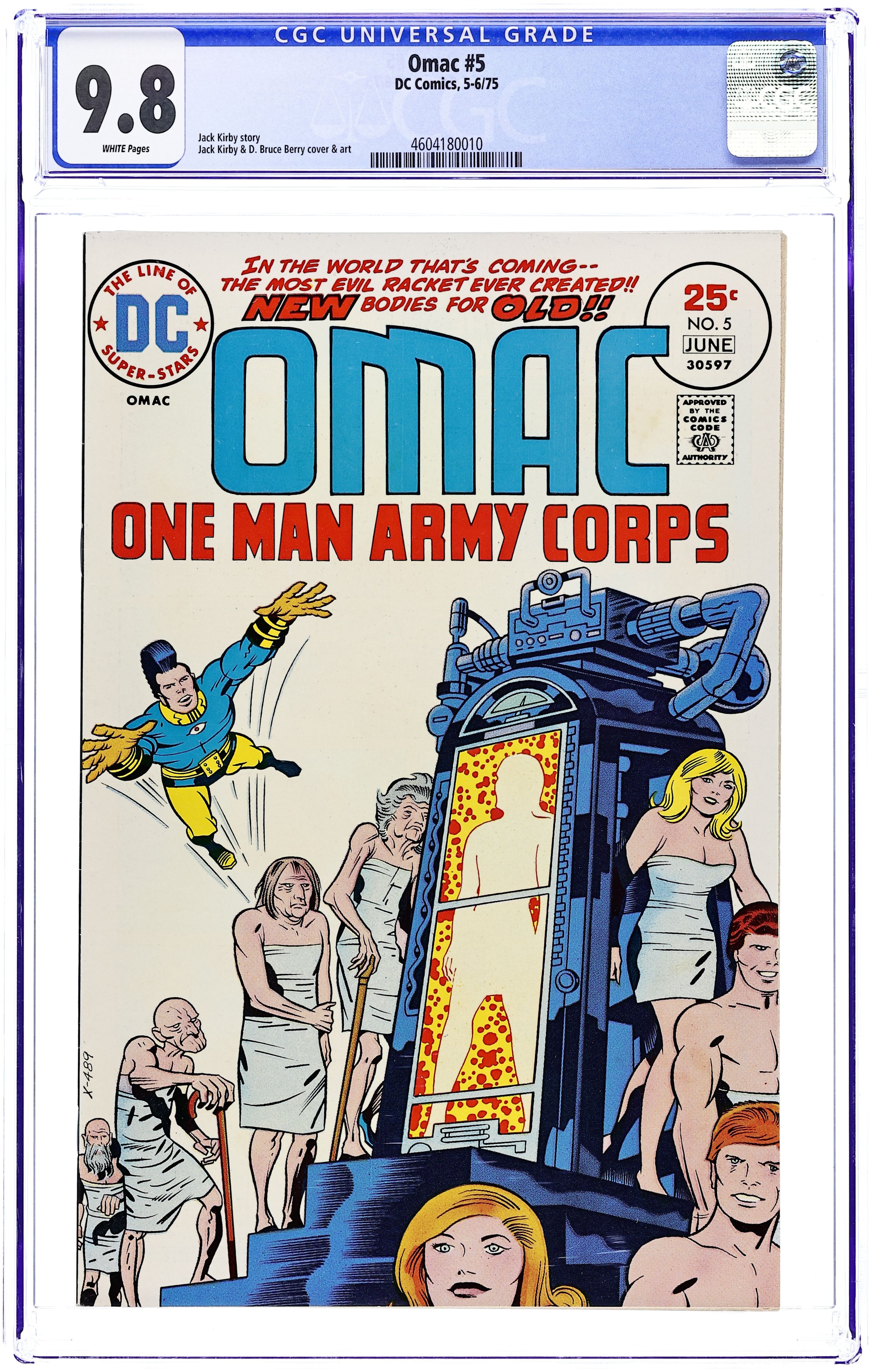 "New Bodies for Old." The Crime Cabal's brain transplant scheme is attacked by Omac and reluctant ally Buck Blue. Script and pencils by Jack Kirby, inks by D. Bruce Berry. Cover by Kirby and Berry. Cover price $0.25.