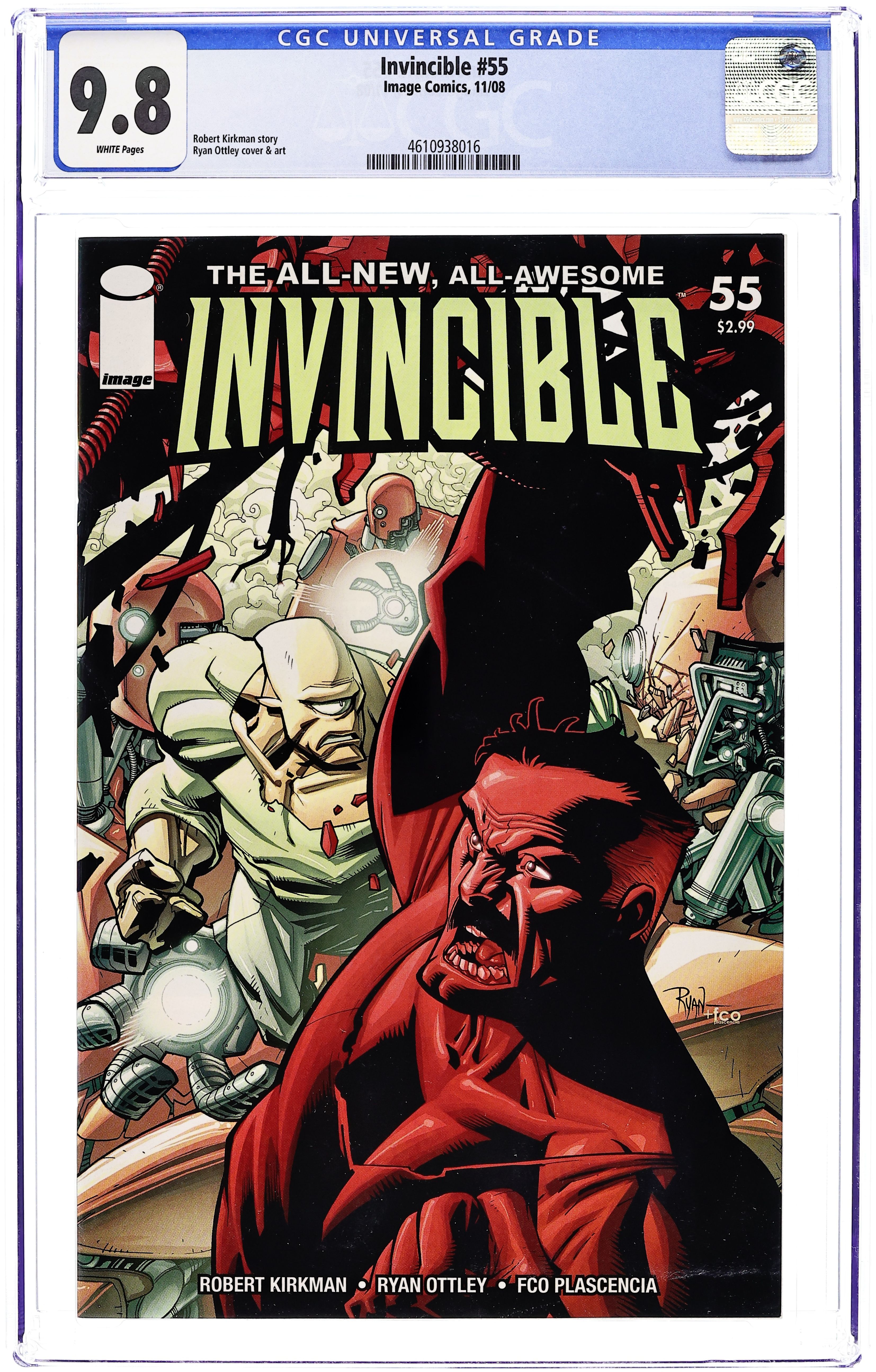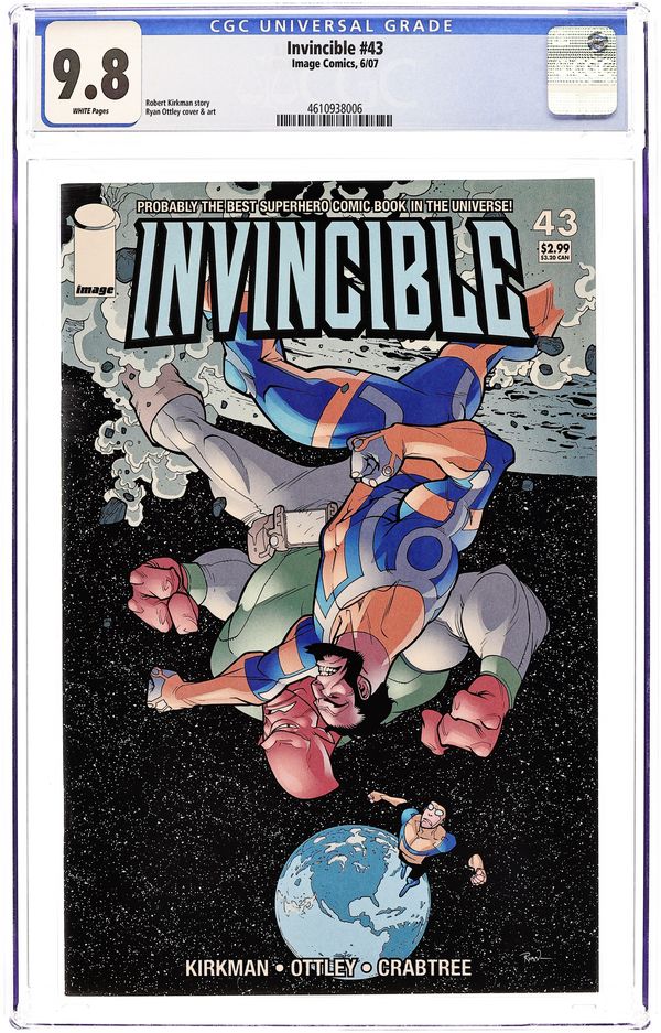 Ends Dec 8 8:39 PM CST Bid History 6 bids Current Bid $42 Your Secret Max Bid If you'd like to bid, please log in or register. Written by ROBERT KIRKMAN. Art & cover by RYAN OTTLEY & BILL CRABTREE. The Re-animen strike! After months of careful planning and preparation D.A. Sinclair unleashes his undead automations on Upstate University. Luckily, a young man named Mark Grayson just happens to be attending classes there. He'll be able to do something to stop them - he's INVINCIBLE! 32 PAGES FC Cover price $2.99.