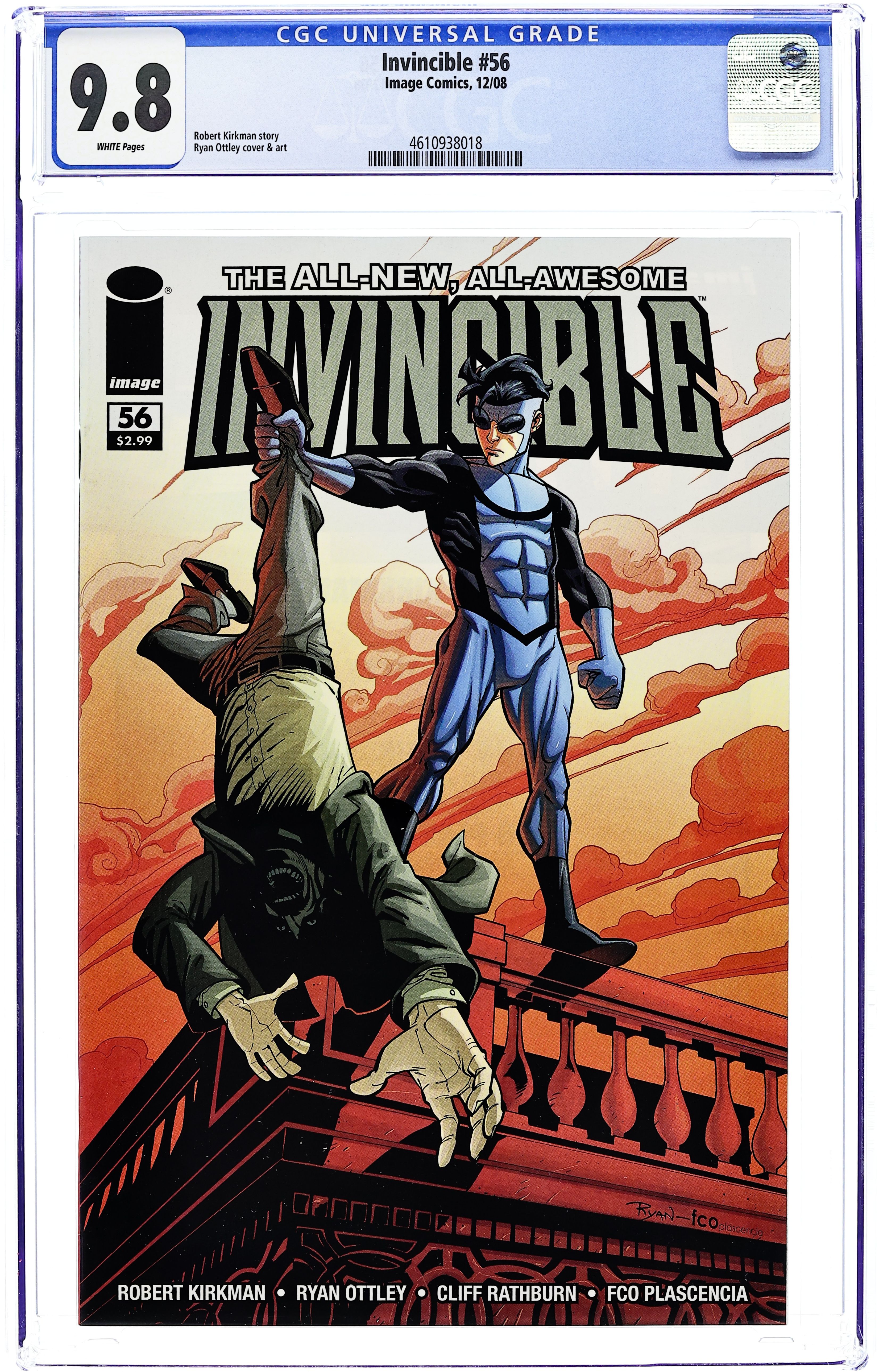 Starts Dec 8 story ROBERT KIRKMAN art & cover RYAN OTTLEY & FCO PLASCENCIA When someone very close to Invincible is hurt - the gloves come off! Is Mark Grayson's murderous Viltrumite heritage finally coming to the forefront?Find out in this special stand-alone issue that answers the question once and for all: can Invincible be driven to MURDER? 32 PAGES, FC Cover price $2.99.