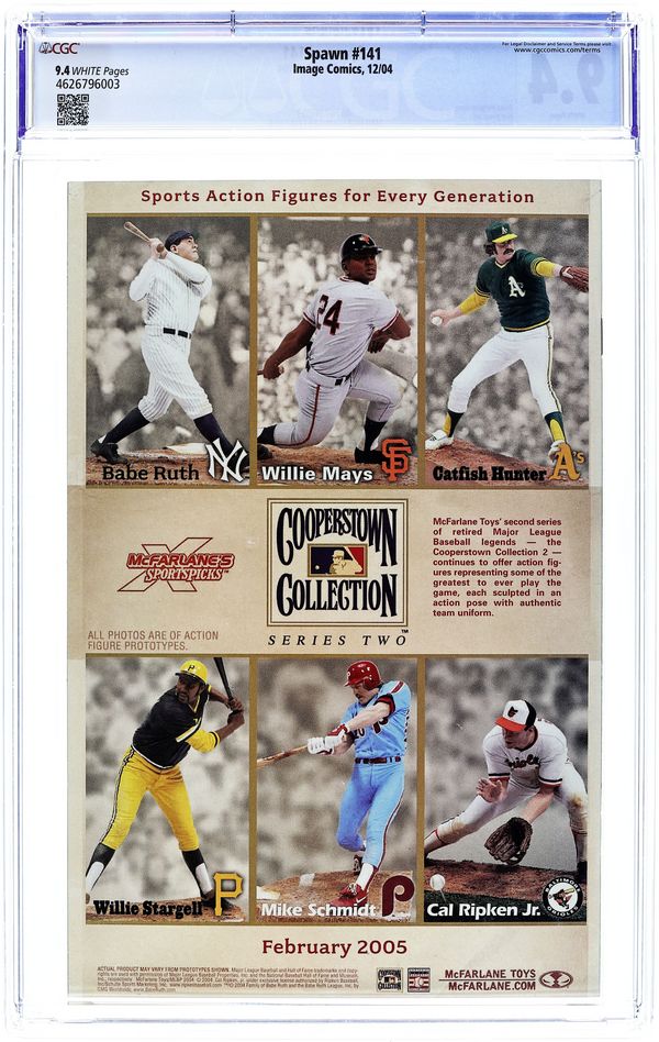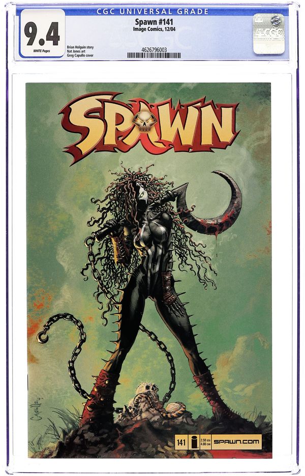 Direct Edition. Written by Brian Holguin and Todd McFarlane. Art by Angel Medina and Danny Miki. Cover by Greg Capullo and Todd McFarlane. Ongoing monthly series In stores the week of June 25th The Concept: Al Simmons, once the U.S. government's greatest soldier and most effective assassin, was mercilessly executed by his own men. Resurrected from the ashes of his own grave in a flawed agreement with the powers of darkness, Simmons is reborn as a creature from the depths of Hell. Disfigured, homeless and alone, this warrior now known as Spawn wanders the shadowy alleys of New York City in search of his past life. This Issue: "Mad Shadows, part 1"?Childhood memories blend with adult terror: A bizarre rash of attacks have recently occurred in the city-attacks that seem to mimic scenes from classic horror films and stories. Could an obsessed new kind of serial killer be behind the brutal assaults? Or could something far stranger and far more dangerous be responsible? One way or another, Spawn is determined to find out. FC 32pp $2.50 Cover price $2.50.