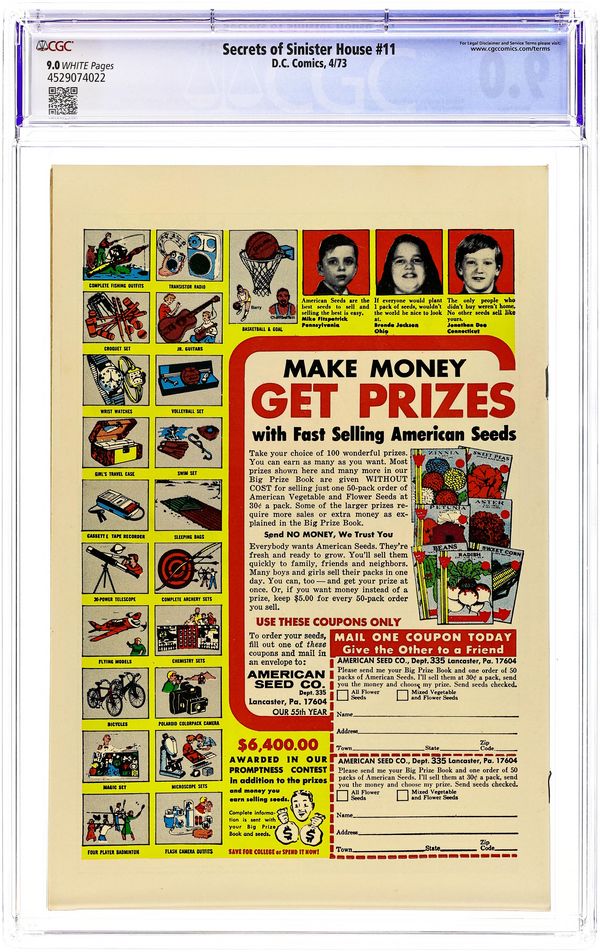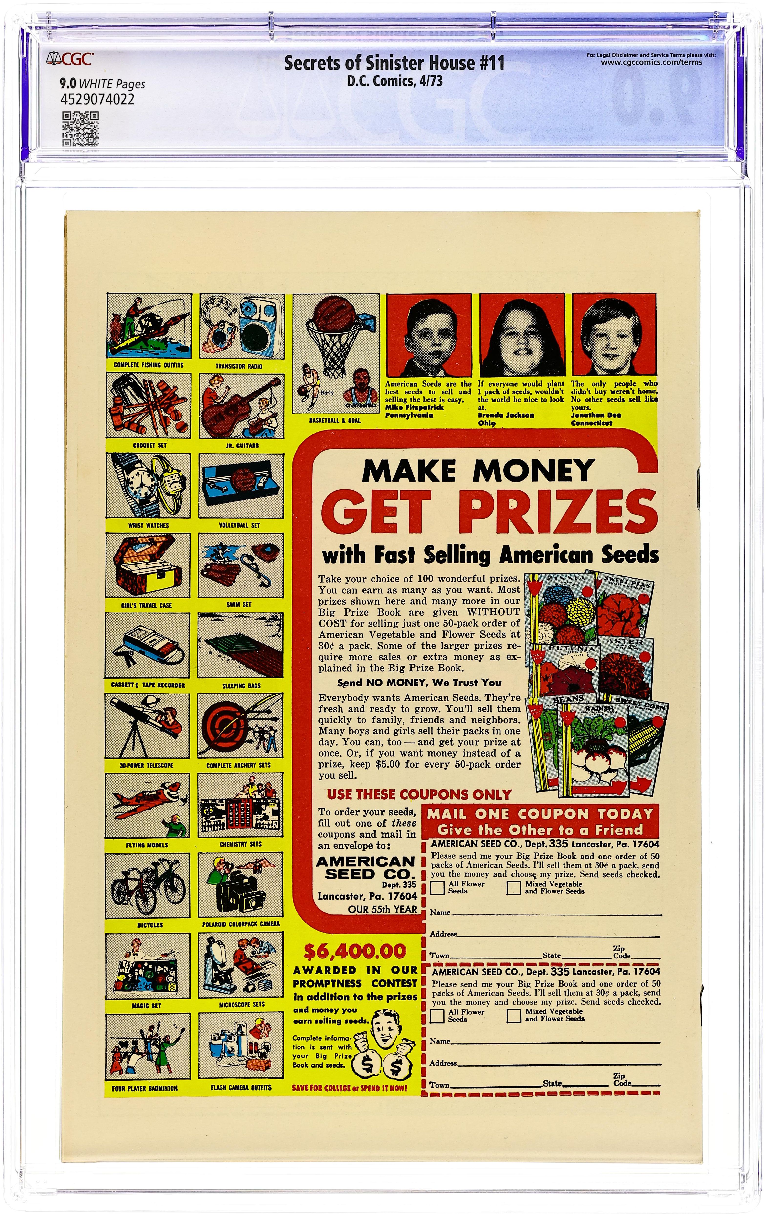 Final issue of the series. "The Strange Shop on Demon Street"; "Mad to Order"; "The Baby Who Had But One Year To Die" with script by D.W. Holtz, art by Angel B. Luna; "The House That Death Built" with script by L. Dorfman, art by Jerry Grandenetti; and a reprint, "The Half-Lucky Charm!" with pencils by Gil Kane, inks by Bernard Sachs. Cover price $0.20.