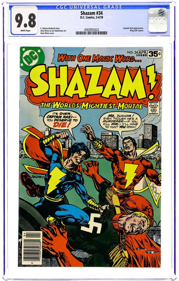 Cover art by Al Weiss. "The Führer of Chicago," script by E. Nelson Bridwell, pencils by Don Newton, inks by Kurt Schaffenberger; Captain Nazi, who has been voluntarily in suspended animation since the Marvel Family got stuck in Suspendium, takes the Sears Tower in Chicago and activates a force field that will prevent any outside signal…including Captain Marvel's lightning; This is the first appearance of Captain Nazi since the Golden Age/Fawcett Publications, and his origin is told by the first time since the creation of this character; This is the first DC issue where Captain Marvel is no longer drawn in C.C. Beck's style. "A Word About the Fight of the Century" Publishorial by Jenette Kahn; The truth about Superman vs. Muhammad Ali. "Sable Lady" Hostess snack cakes ad starring Batman. 36 pgs., full color. Cover price $0.35.