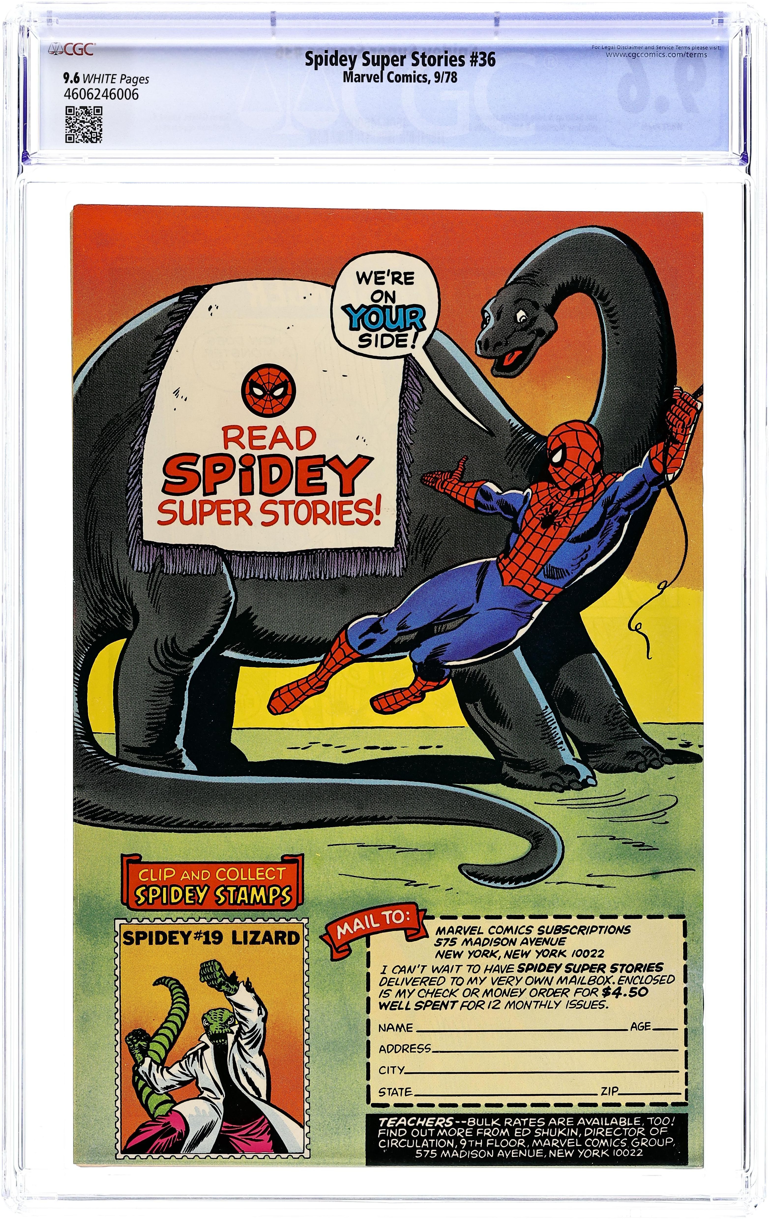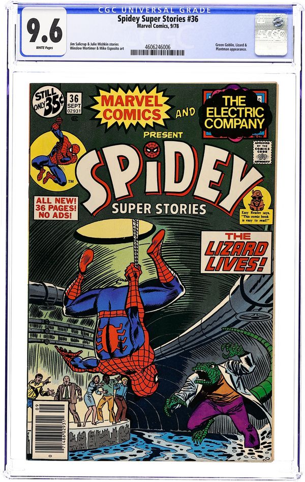 "Leaping Lizard!" Story by Jim Salicrup, Karas, and Julie Mishkin. Art by Winslow Mortimer and Mike Esposito. Cover by Sal Buscema. The Lizard is back and deadlier than ever! Includes the 1-page features "Look Out for the Lizard," "Meet the Plantman,"and "Wit of the Webslinger." Includes the back-up tale "Ghosts and Goblins!" Guest-starring the cast of the Electric Company. Plus, Spidey must stop the Plantman in "The Plantman and the Garden of Eden!" Featuring the clip and collect Spidey Stamp: #19 (actually #20) Lizard. Cover price $0.35.
