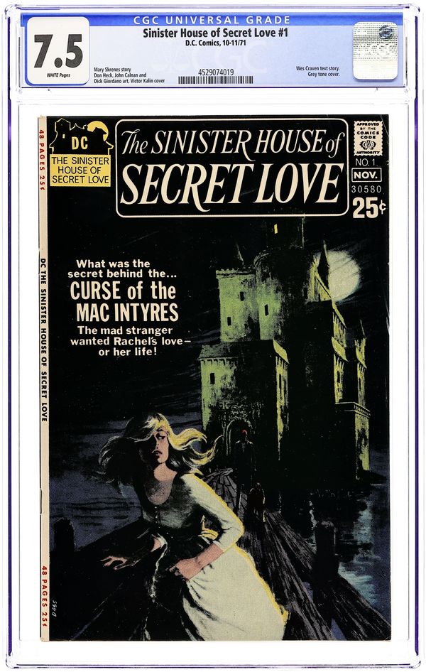 Painted cover art by Victor Kalin. The Curse of the MacIntyres, art by Don Heck; After Rachel's father dies, Rachel moves in with her cousin's family who are all afflicted with a mental illness that her father was trying to create an antidote for. The Strange Case of Patience Worth text story by Wes Craven. A Night to Remember--A Day to Forget!, pencils by John Calnan, inks by Vince Colletta; The ghost of Neil Anders tries to drive two lovers apart. 52 pgs. $0.25. Cover price $0.25.