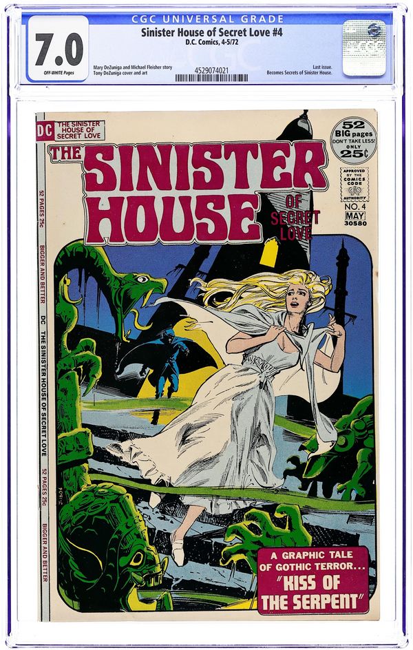 Cover art by Tony DeZuniga. Kiss of the Serpent, script by Mary DeZuniga (plot) and Mike Fleisher (dialogue), art by Tony DeZuniga; When Michelle Harlinson's parents die, her uncle sets her up with a job in India with a friend; She unknowingly enters a family feud and is nearly killed before things are settled in favor of the man she loves. Letter from Marvels Duffy Vohland. 52 pgs. $0.25. Cover price $0.25.