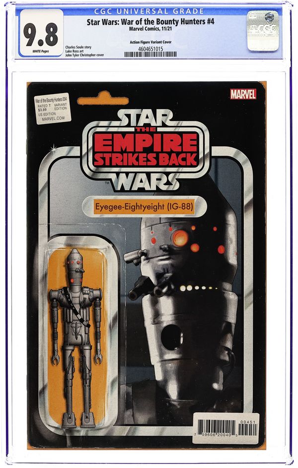 Written by Charles Soule. Art by Luke Ross. Cover by John Tyler Christopher. THE WAR CONTINUES! The true machinations of the theft of HAN SOLO from BOBA FETT become clear, as one-time love of Solo QI'RA has returned her terrifying criminal organization, CRIMSON DAWN, to the galaxy. Qi'ra used Han to bring the most powerful players in the galaxy together, and now the pieces are moving toward their endgame. DARTH VADER, LUKE SKYWALKER, LEIA ORGANA, VALANCE, APHRA, THE HUTTS - all are vying for the ultimate prize, while Boba Fett's stuck in the middle, a simple man just trying to get what's his! 28 pages, full color. Rated T Cover price $3.99.