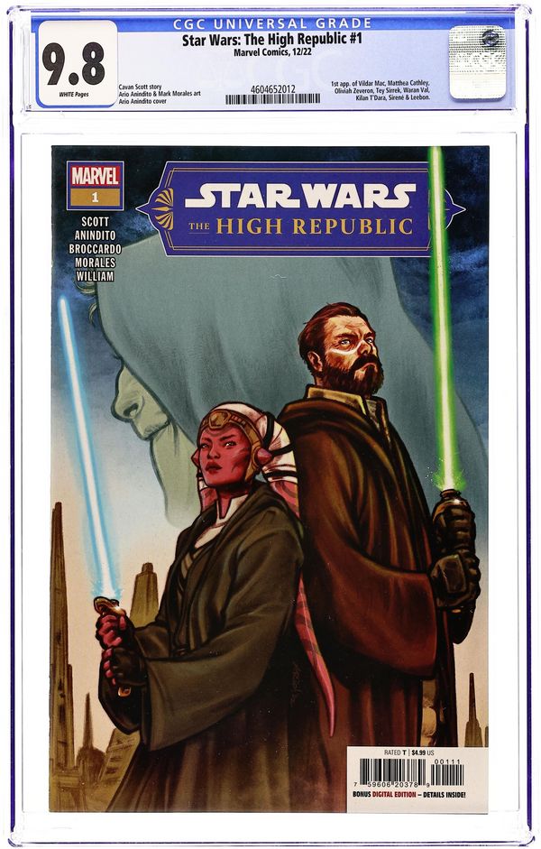 Written by Cavan Scott. Art by Ario Anindito. Cover by Ario Anindito. A NEW CHAPTER BEGINS FOR STAR WARS: THE HIGH REPUBLIC! One hundred and fifty years before the fall of Starlight, another beacon burns bright in the galaxy, a beacon of faith and spirituality. Jedha. The Pilgrim Moon. The Kyber Heart. But tensions are rising in the holy city and dark days are to come. Jedi Vildar Mac, a Jedi safe and secure in who he is and what he could be, arrives as Jedha's fragile peace begins to crumble.. But a nightmare awaits...a nameless terror that will become the stuff of legend… 36 pages, full color. Rated T Cover price $4.99.