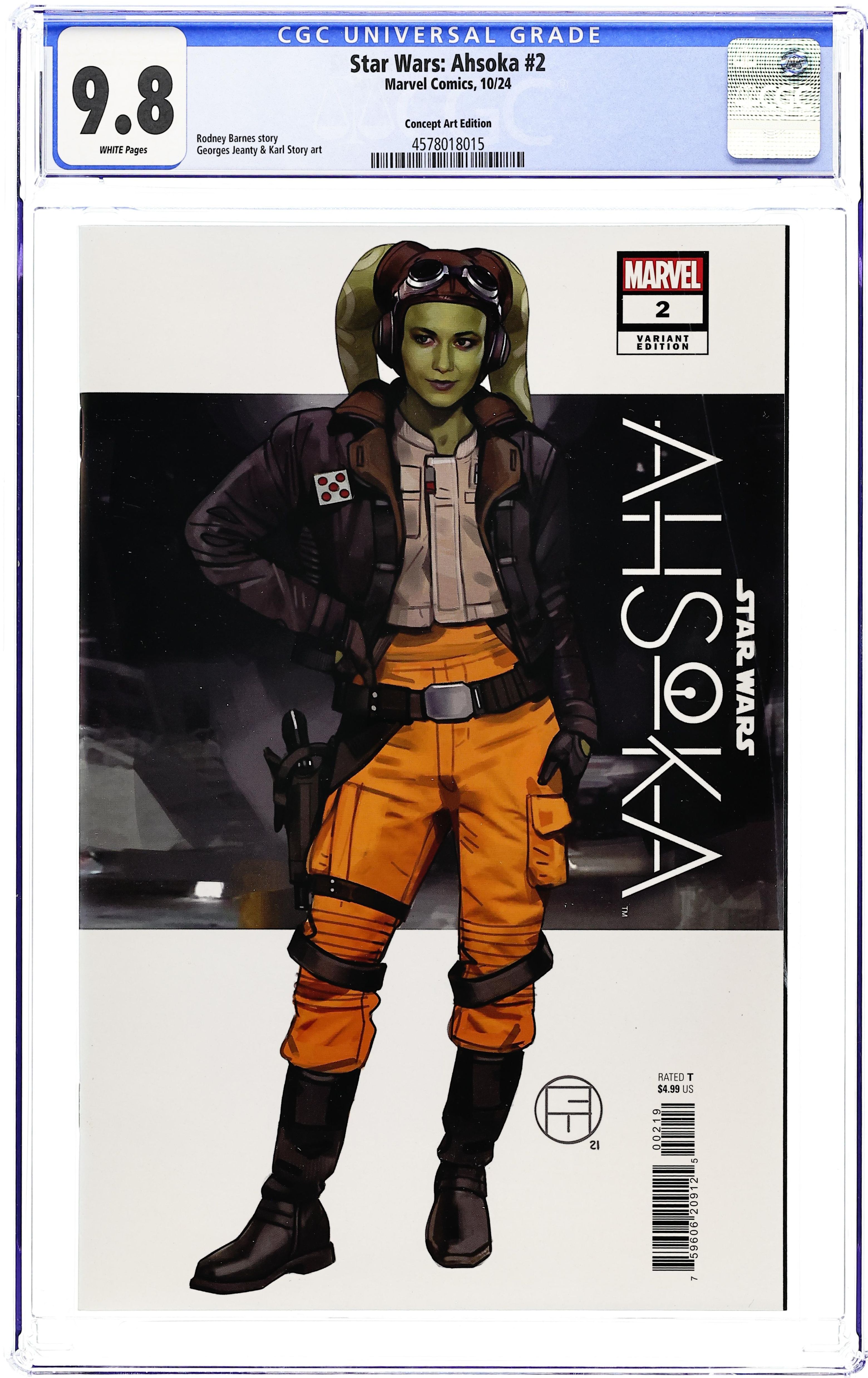 Limited 1 for 10 Retailer Incentive Variant Cover. Written by Rodney Barnes. Art by Georges Jeanty. Cover by Brian Matyas. TOIL AND TROUBLE! AHSOKA and GENERAL HERA SYNDULLA travel to NEW REPUBLIC shipyards and make an unexpected discovery. The adaptation of the hit Disney+ series continues! 40 pages, full color. Cover price $4.99.