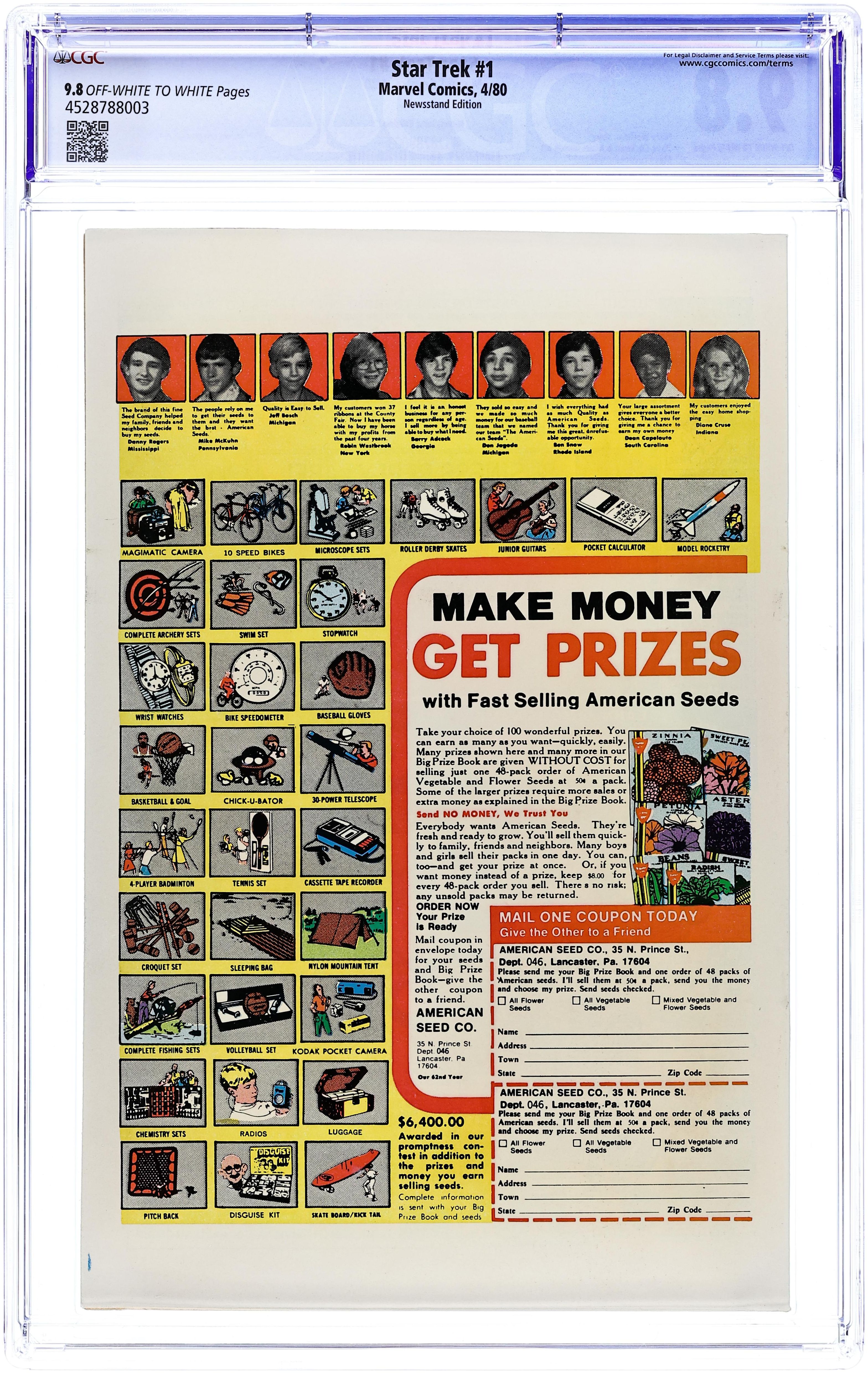Newsstand Edition. "Star Trek: The Motion Picture: Part 1 of 3!" Based on the screenplay by Harold Livingston and the Story by Alan Dean and Gene Roddenberry. Adapted by Marv Wolfman. Art by Dave Cockrum and Klaus Janson. It's the comic book adaptation of the Big Screen debut of Gene Roddenberry's sci-fi phenomenon! When a threat from beyond the stars threatens a billion lives, the brave crew of the USS Enterprise must once again assemble and head off into the Final Frontier. 32 pages, FC. Cover price $0.40.
