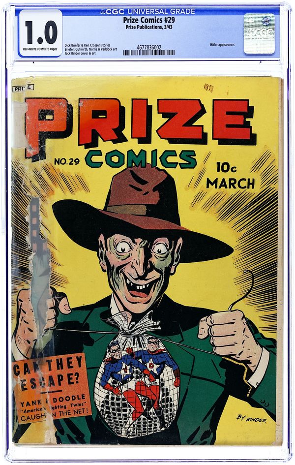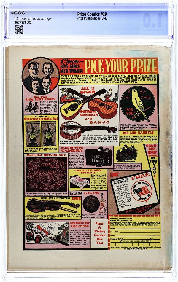 Cover art by Lou Fine. "Peril In the Park," art by Reed Crandall; A small western bank gets robbed, at closing time, and the crooks get away in a fast car, and lose their police pursuers out in the vast flat countryside; Joe Hercules steps in. "One Hamburger With Trouble," art by Al Bryant; Betty Bates is present when a gang of well-fed thugs walks brazenly out of her favorite cafe without paying; Ted the counter man steps out and yells a them about it, so they jeer and throw big rocks at the diner, breaking many windows; Betty is ready to take this mess to court. "An Odorless Perfume" one-page story starring Dan Tootin, script and art by Jack Cole. "The Medical Supply Smugglers," script by S. M. Iger, art by Alex Blum; Douglas and Rodney Strange, and Wing Low, are crossing the Pacific Ocean, bound for the U.S., aboard an ocean liner; Doug gets lured into an ambush and jumped on by two thugs, then thrown into a cabin and locked up. "Lion Boy Is In Love," art by Henry Kiefer; Two vengeful ex-convicts come to the area, looking to murder Jim, the District Commissioner. "Baron Revals" starring Bob and Swab, script and art by Klaus Nordling. "Grotoff's Underground Underworld," script by Toni Blum, art by Witmer Williams (as Clark Williams); The Red Bee (Rick Raleigh) vs. Grotoff and his gang. "The Secret Pact," script by S. M. Iger, art by Alex Blum; Back in the Balkans, Neon prevents Shickler from invading the nation of Slovia and encourages its people to work towards establishing a democratic government. "Dark Side of the Moon" starring Blaze Barton, art by Maurice Gutwirth. "Murder In the Sun" text story by Toni Blum (Tony Boone). "Assignment: Paris," art by George Appel; G-5 Super Agent vs. Nazis. "The Phantom Peacemakers" starring Old Witch, art by George Appel. "Sabotage At Acme Aircraft," art by Al Bryant; Don Glory vs. a gang of saboteurs. 68 pgs., full color. Cover price $0.10.