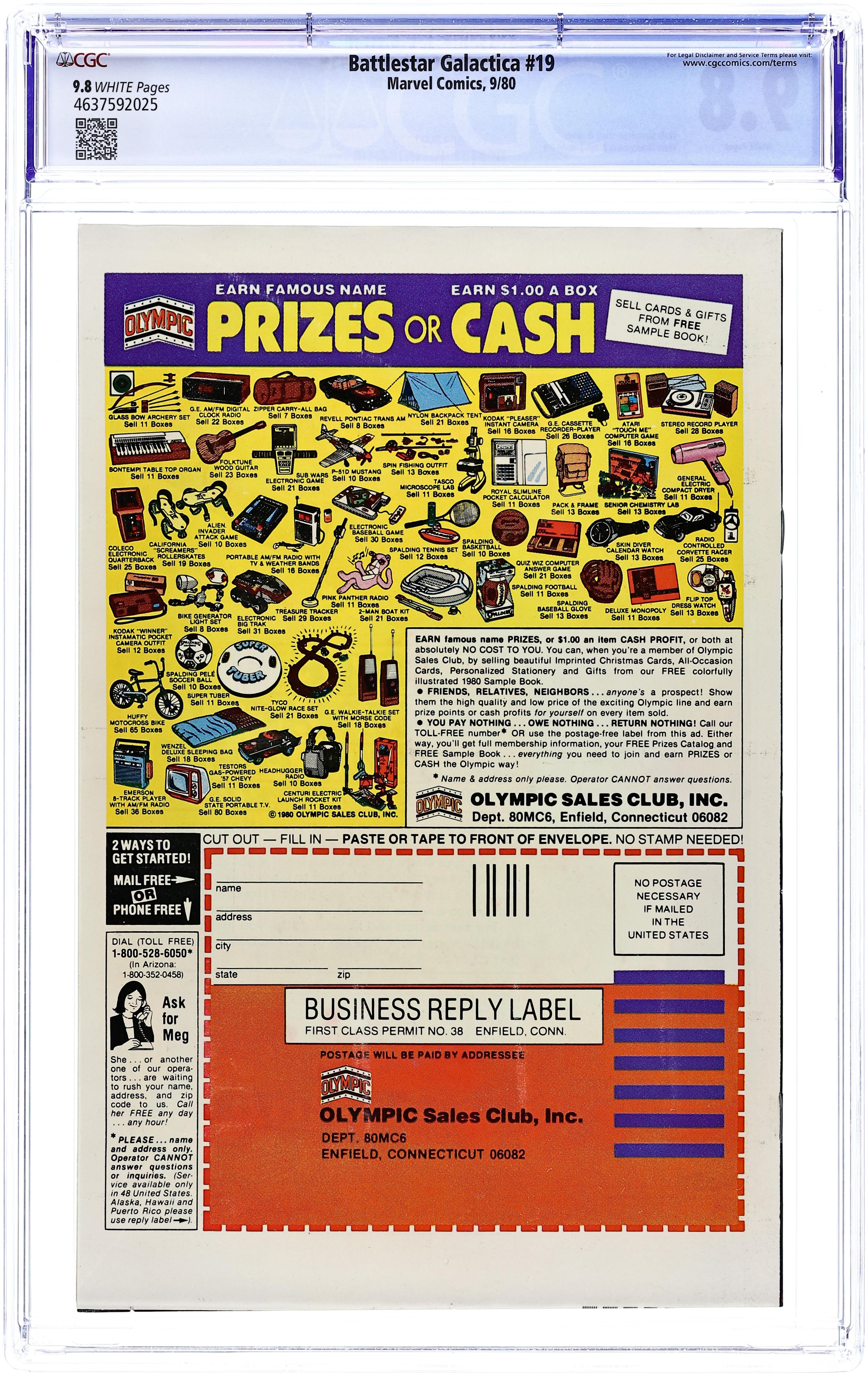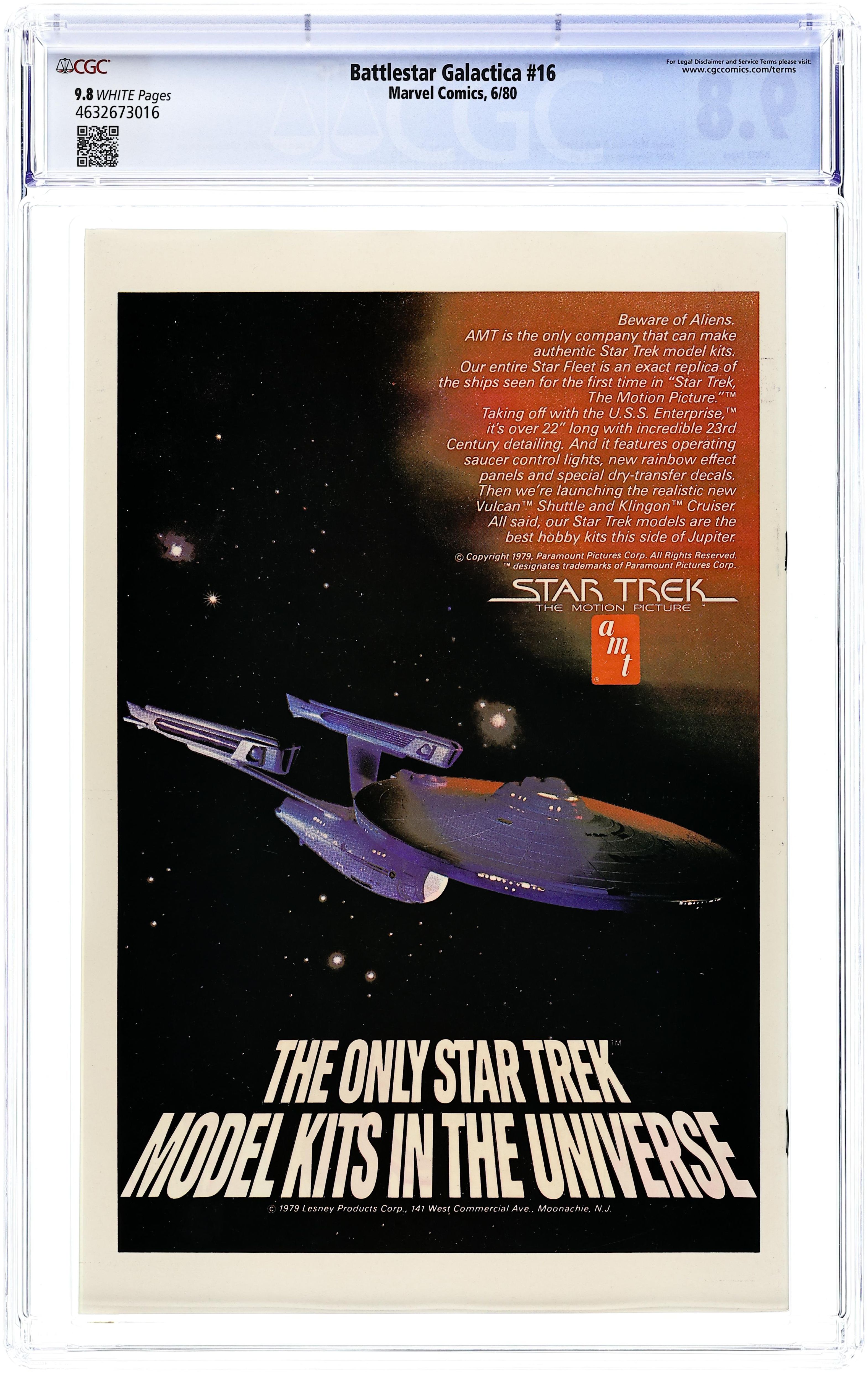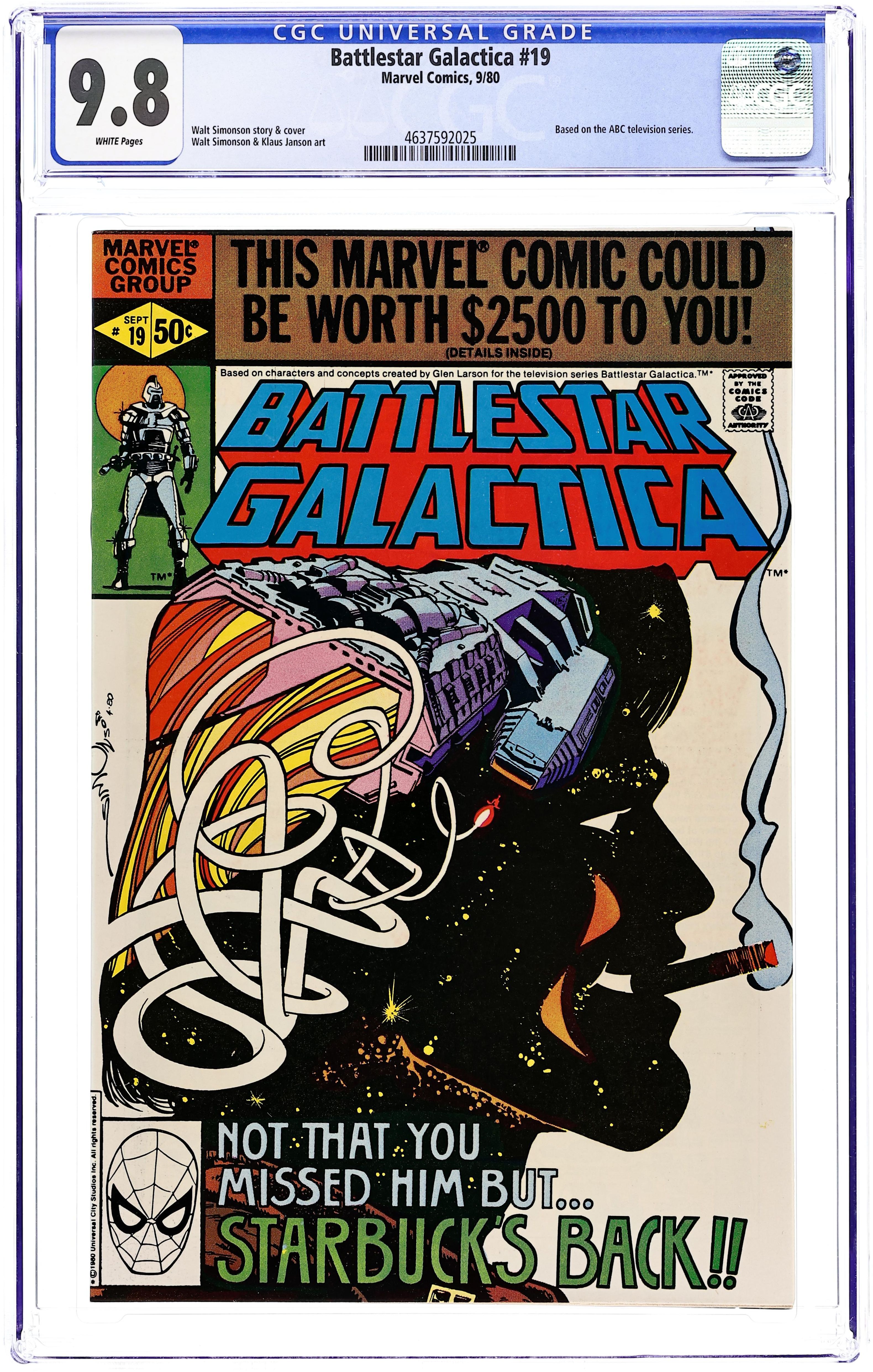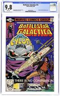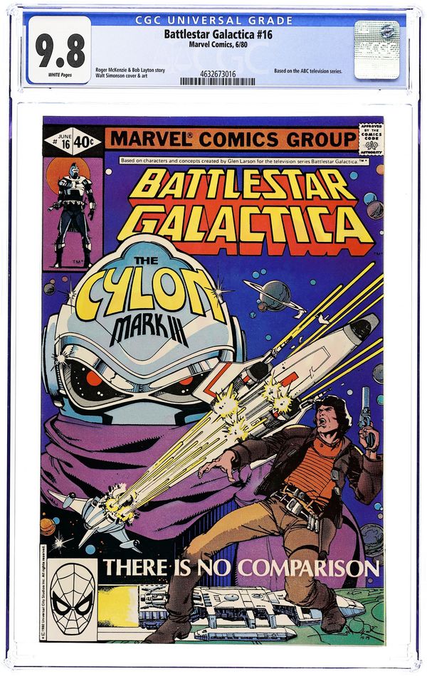 "Battlestar Galactica!" Based on the episode written by Glen Larson. Adapted by Roger McKenzie. Art by Ernie Colon. Cover by Dave Cockrum and Bob McLeod. In a distant time and place, a terrible war was waged between man and machine...the humans lost. Now, guided by their last surviving warship - the mighty Battlestar Galactica - a handful of survivors travel through space in search of the lost home of their ancestors, a shining planet known through ancient records, a planet called Earth. Cover price $0.35.