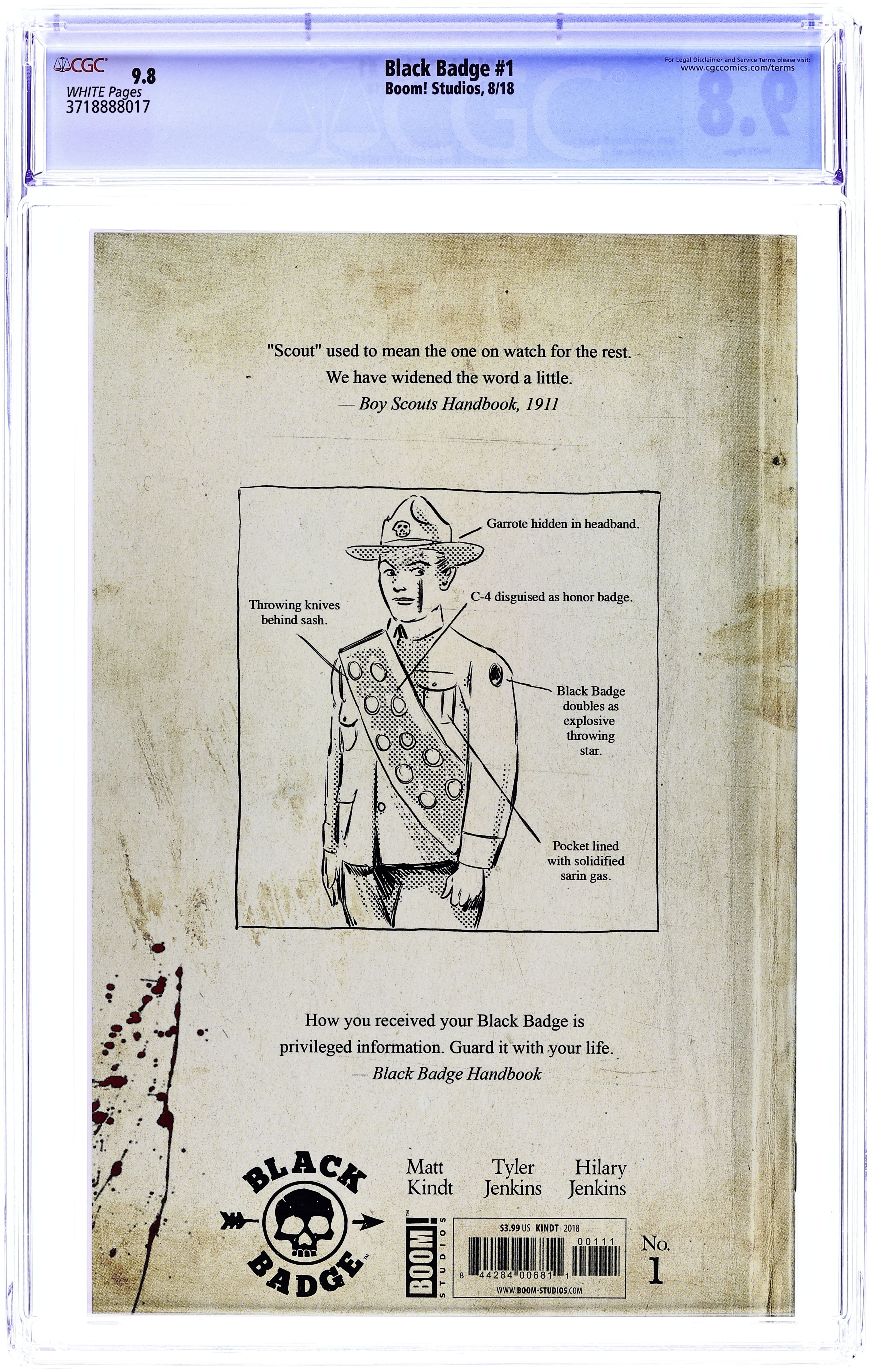 Written by Matt Kindt. Art by Tyler Jenkins. Cover by Matt Kindt. The team behind Grass Kings , reunite for a new ongoing series about a top-secret, elite branch of boy scouts tasked by the government to take on covert missions. Among their organization, the Black Badges are the elite; the best of the best. They are feared even by the other badges. The missions they take are dangerous, and they will only get worse as their leader's attention is split between their mission objectives and tracking down a lost team member. A team member who disappeared years ago, presumed dead. A haunting look at foreign policy, culture wars and isolationism through the lens of kids who know they must fix the worlds that adults have broken. 24 pages, full color. Cover price $3.99.