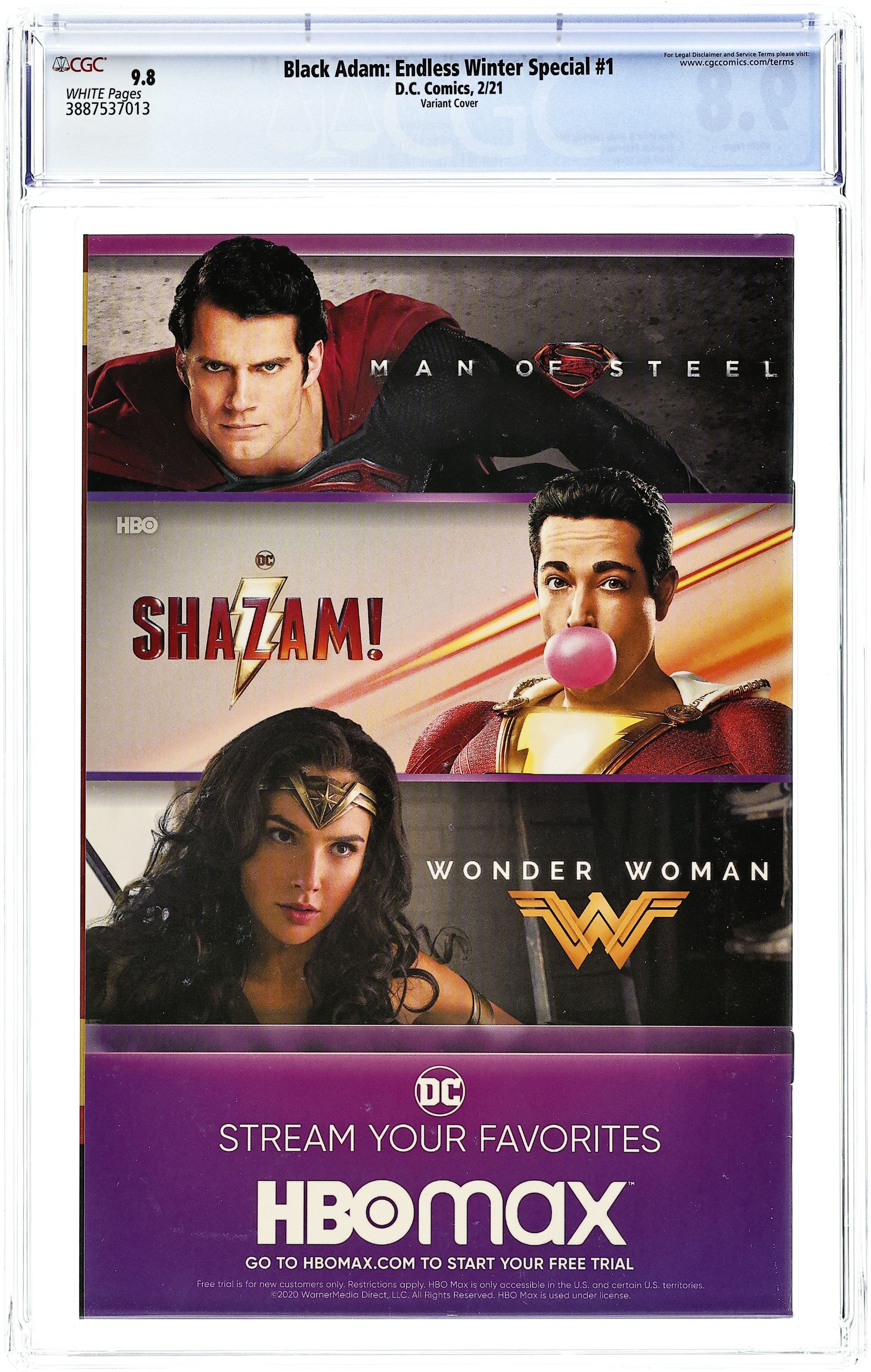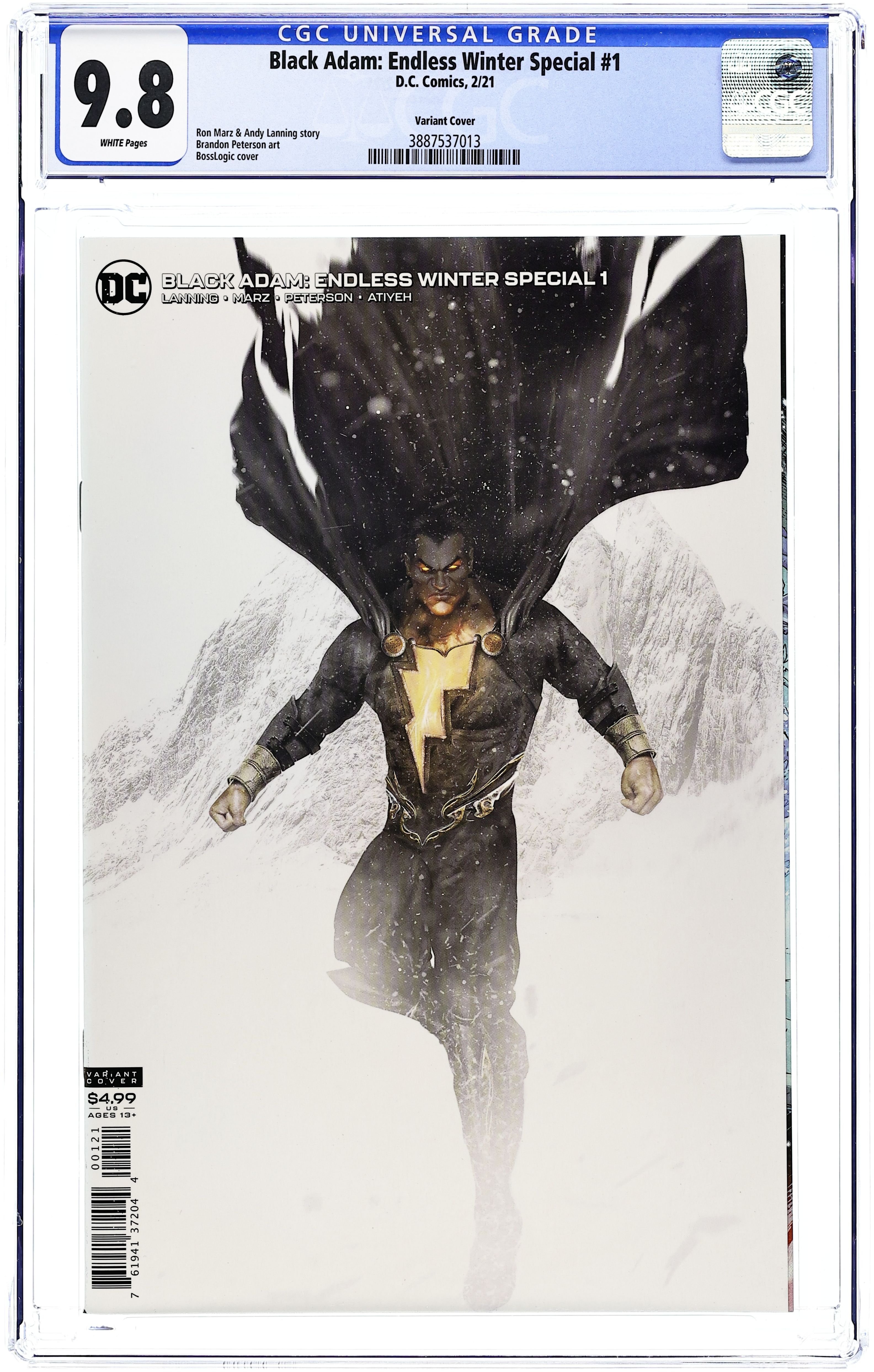 Written by Andy Lanning and Ron Marz. Art by Brandon Peterson and Marco Santucci. Cover by BossLogic. Endless Winter chapter eight! Seeking to bolster his nations place in the world, Black Adam arrives in Gotham City demanding action to end the threat causing an endless winter across the globe. But Black Adam isnt telling the worlds leaders everything—especially not that hes faced the mysterious Frost King before and won. Find out what Adams hiding in the penultimate chapter of "Endless Winter." 32 pages, full color. Rated T+ Cover price $4.99.