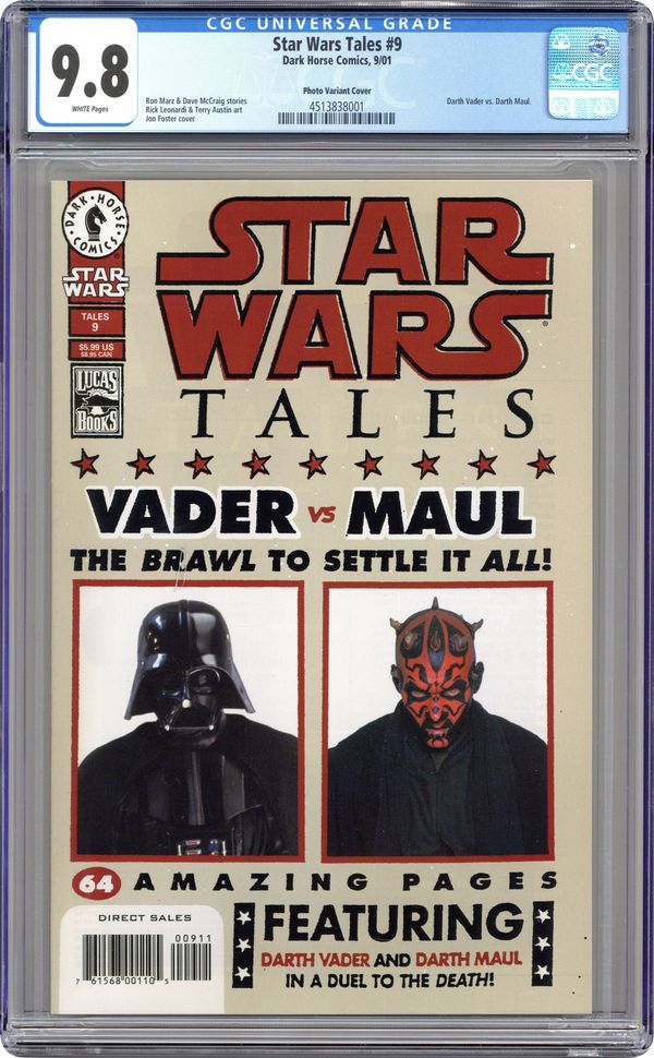 Newsstand Edition. Story by Nathan P. Butler, Rob Williams, and Shane McCarthy. Art by Michael Lacombe, Brandon Badeaux, and James Raiz. Photo Cover. On sale September 8, FC, 64pg, (Bermejo and photo cover), $5.99 This is it? the beginning of a new direction for Star Wars Tales! Stepping away from the shorter, sillier Star Wars stories, with this issue Tales goes full-tilt toward a more exciting and sophisticated storytelling style. Cla$$war writer Rob Williams and Man of Steel artist Brandon Badeaux team up to bring you the story of Darca Nyl?a Jedi wandering the galaxy's Outer Rim hunting for revenge and hiding a deadly secret. Writer Shane McCarthy presents a rag-tag group of convicts and cutthroats flying for the Empire's glory in the feared TIE Fighter squadron called "Black Eight." And Kyle Katarn, star of the hit video game Jedi Outcast, goes toe-to-toe with the vile Yuuzhan Vong, in an action-packed tale by Nathan P. Butler and James Raiz (Tokyo Storm Warning). ? Cover by Lee Bermejo (Batman/Deathblow; Batman: Gotham Knights) ? New-reader friendly ? each story is self-contained and easily accessible. Cover price $5.99.
