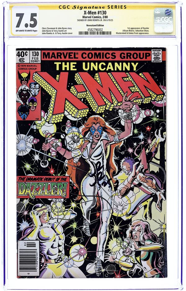 Newsstand Edition. The Dark Phoenix Saga: Part 2 of 9 - "Dazzler!" Story by Chris Claremont and John Byrne. Art by John Byrne and Terry Austin. Wolverine, Colossus, and Storm have been taken captive by the sultry and dangerous White Queen, but for what purpose. Only the young new mutant Kitty Pryde can warn the rest of the team, but will she be in time to save her new friends? Meanwhile, Cyclops and Phoenix encounter another "new mutant" called Dazzler. Plus, Jason Wyngarde continues his mental seduction of Jean Grey. NOTE: 1st appearance of Dazzler. Cover price $0.40.