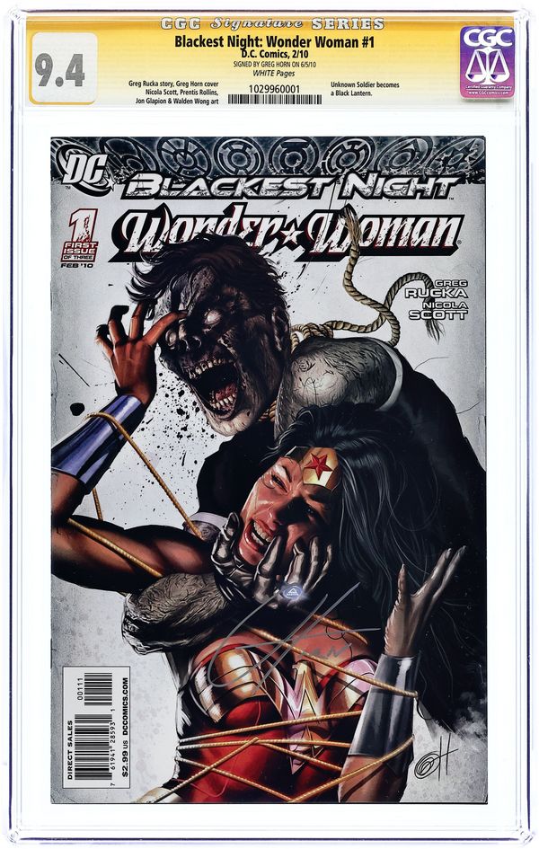 Limited 1 for 25 Variant cover by Ryan Sook. Written by Greg Rucka. Art by Nicola Scott. Following closely to the events of BLACKEST NIGHT, this miniseries event concludes as the Amazonian Princess comes to terms with who she is and what her role is in the world. But will her acceptance make her more appetizing to the Black Lantern hordes - or could that emotion be their undoing? Cover price $2.99.