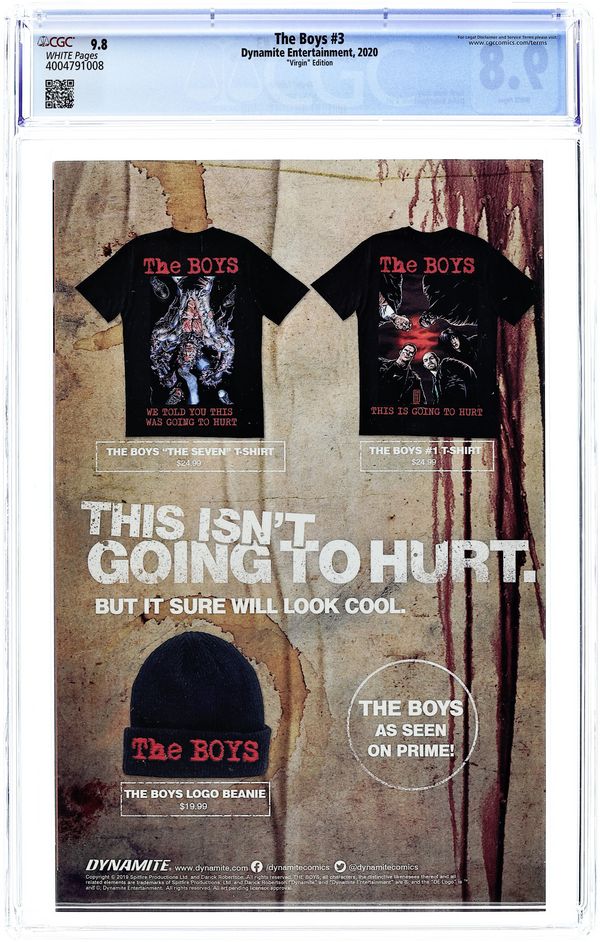 Carnivore Comics Exclusive Virgin Cover by Marco Turini. Dynamite Reprint Edition. Written by Garth Ennis. Art and Cover by Darick Robertson. Need the perfect jumping-on point for The Boys after binging it on Prime? Here you go! Dynamite never actually had the honor of publishing issue #1 of The Boys (we started with #7), but now we're doing it here as a special, limited edition. Don't miss out on where it all began! 32 pages, full color. Mature Readers. NOTE: Do not confuse with the 2006 Wildstorm printing.