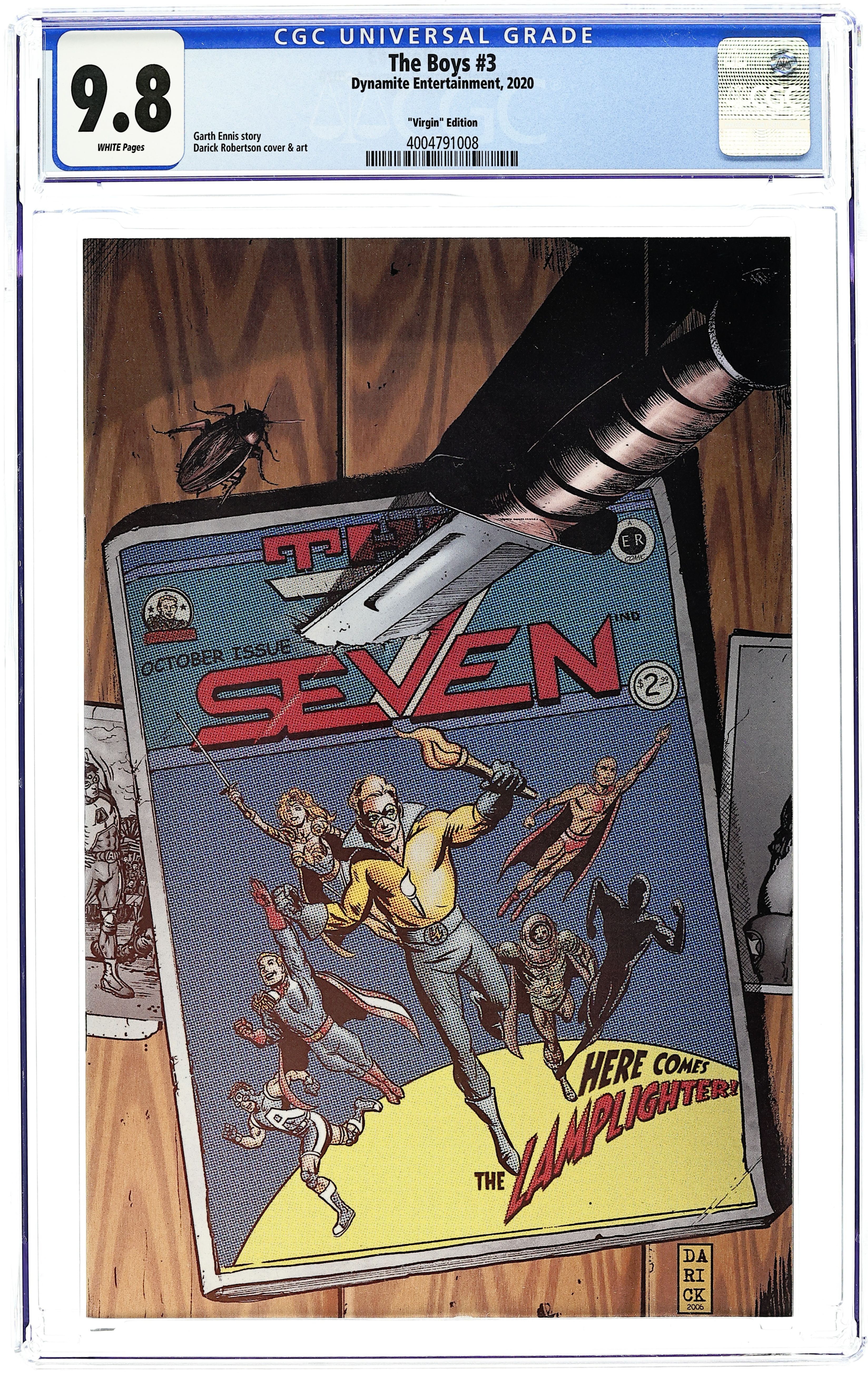 Kickstarter Exclusive Virgin Cover. Written by Garth Ennis. Art and cover by Darick Robertson. The dark new series by Garth Ennis and Darick Robertson heats up as Wee Hughie gets his first taste of action with the Boys when Butcher throws him into the deep end. Meanwhile, meet the planet's mightiest heroes, The Seven, and the young superheroine who would join them. ? 32 pg, FC, ? MATURE READERS