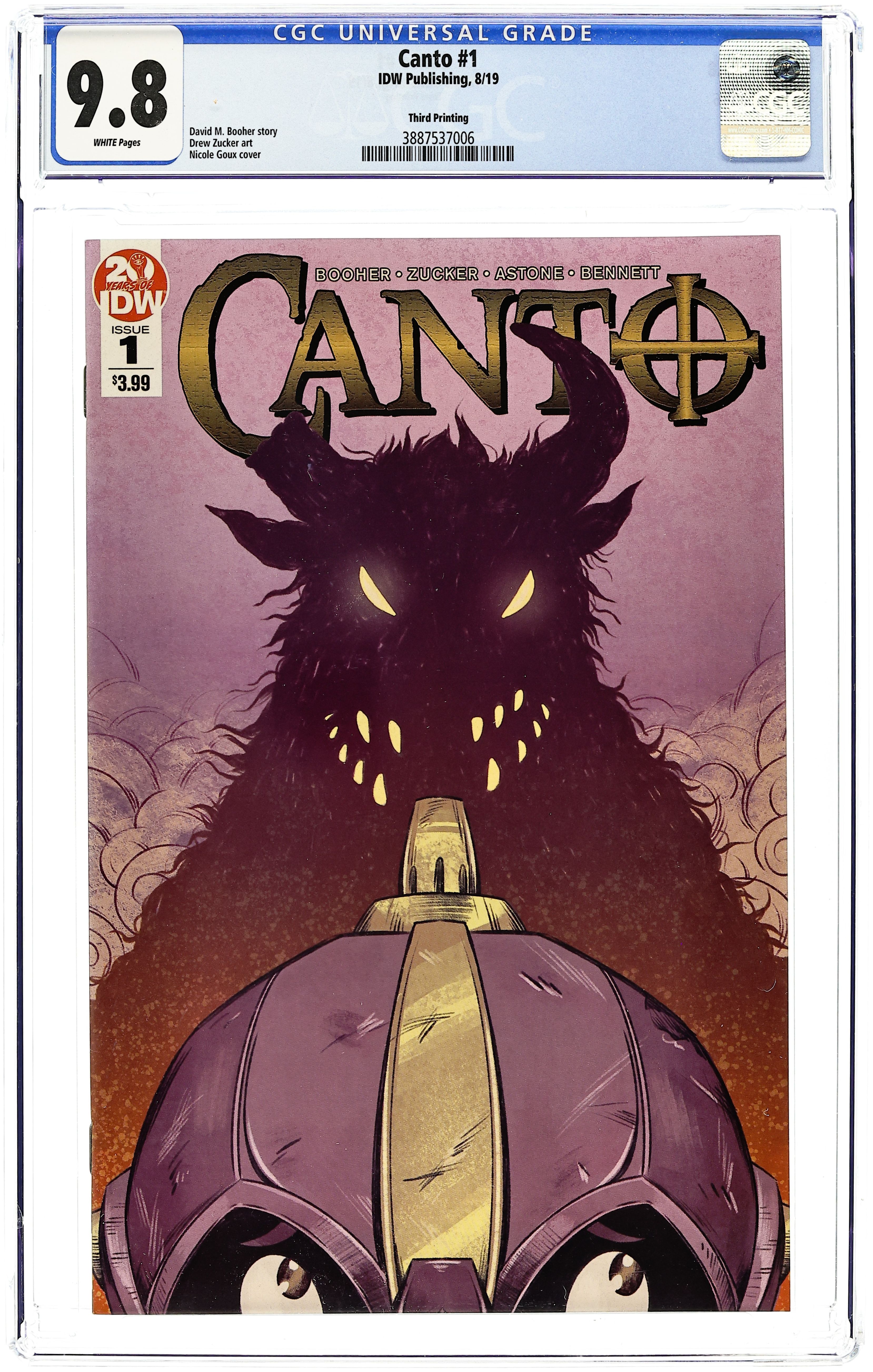 ERROR EDITION - pages 8, 10, & 12 printed twice in place of last pages. NOTE: The fading on the right side of the cover is intentional and part of the design of this homage to TMNT #1. Limited 1 for 10 Retailer Incentive Variant Cover. Written by David M. Booher. Art by Drew Zucker. Cover by Ben Bishop. Book 2 of all-ages fan favorite Canto begins! Once, a little tin slave with a clock for a heart broke all the rules-he found love, he was given a name, and he escaped his masters to go on an epic journey to save his love's heart. He met strange allies and terrifying enemies and, ultimately, though his adventure didn't turn out as planned, he returned to his people and led them to freedom. That freedom is in jeopardy when Canto discovers his people's clocks will stop unless they return to captivity. He and his friends Falco, Rikta, and Veratta embark on a new adventure to save the lives of all their people. Can they lift the curse before their time runs out? 28 pages, full color. Cover price $3.99.