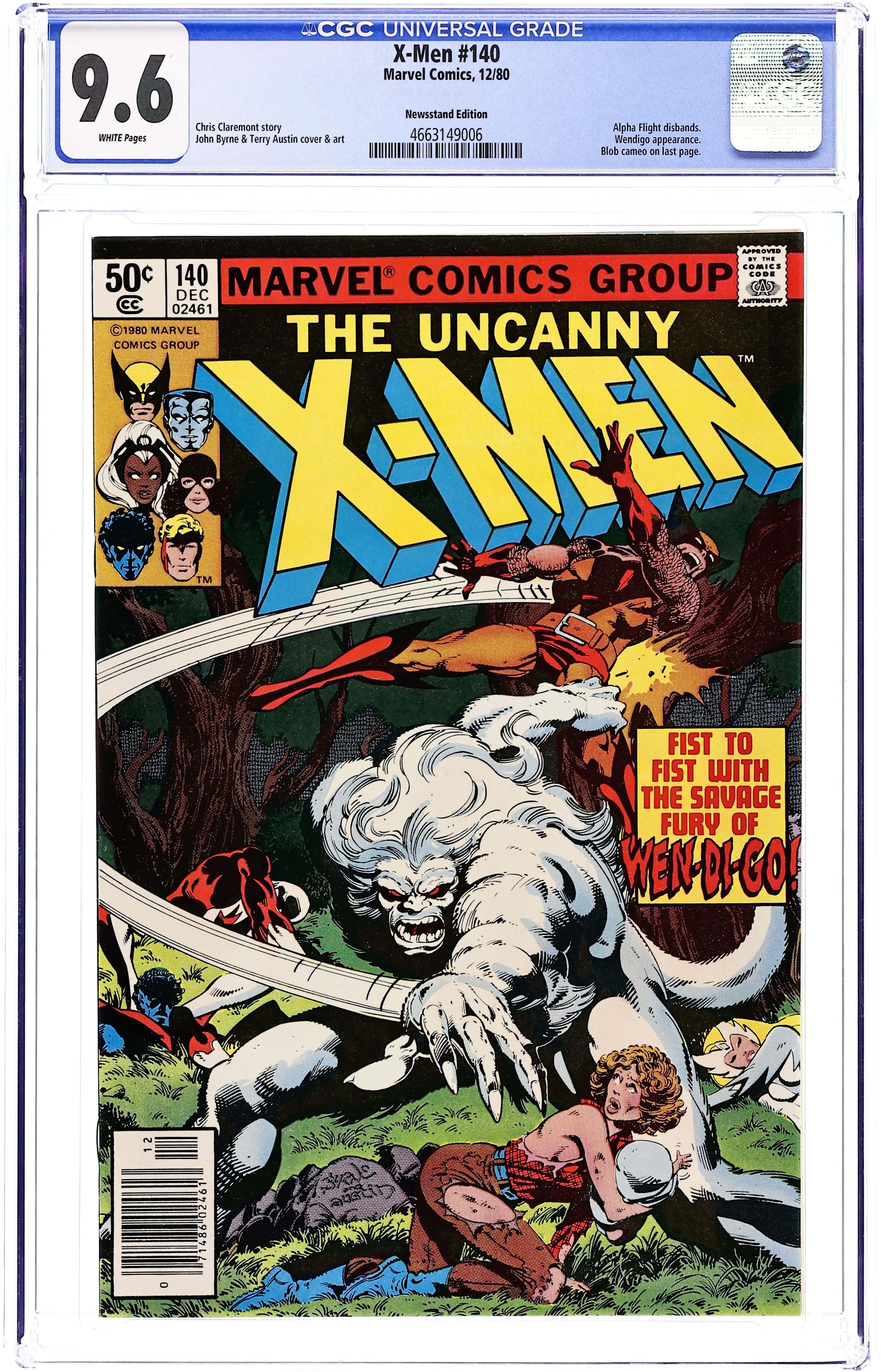 Newsstand Edition. "Rage!" Part 2 of 2. Guest-starring Alpha Flight's Vindicator, Shaman, and Snowbird. Story by Chris Claremont and John Byrne. Art by John Byrne and Terry Austin. Wolverine and Nightcrawler must team-up with Canada's premier super-team Alpha Flight in order to coral one of the deadliest beasts walking the planet - the savage Wendigo! Plus, more secretes from Wolverine and Vindicator's past is revealed. 36 pgs. Cover price $0.50.