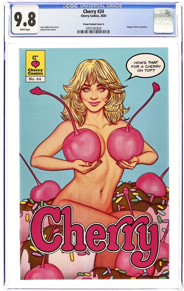 Ends Apr 17 7:48 PM CST Bid History 7 bids Current Bid $60 Your Secret Max Bid If you'd like to bid, please log in or register. Happy Comics Exclusive Variant Cover by Jenny Frison - Limited to 500 copies. Story and Art by Larry Welz. Cherry #24 is bigger, longer, and harder than ever. It's a 48 page monster that has the next two chapters of the exciting ongoing epic. This issue also features All New Cherry Pin Ups by, Scott Diggs Underwood (Ed Edd n' Eddy, The Addams Family), Joe Pekar (Grimm Fairy Tales), Tuco El Buitre (Mademoiselle De Sade), Robert Ullman (Atom Bomb Bikini), Chance Wolf (Spawn, The Pitt), PHILO (Tales of Shaundra), Aaron Bordner (Alice Sinn, Monster High School) & Steven S. Crompton (Demi The Demoness). With Guest Strips by MastaJWood (Marvel, Dynamite), Shlepzig (Red, File 2231), & Gary Yap (Simpsons, King of the Hill).