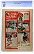 Cover by Dan Zolnerowich. Stories and art by Dick Wood, Dan Zolnerowich, Maurice Del Bourgo, and Clement Weisbacker. One of the more fanciful and influential of 1940s aviator heroes, Airboy fights evil with his radio-controlled plane "Birdie" and its plethora of experimental flying tech. Sometimes listed as Airboy Comics #57. No issue # on cover; Vol. 5, issue #10 in indicia. Airboy tries to reunite a circus owner with his son, but a redheaded femme fatale is blocking the way. The Heap steps in when a descendant of the tyrant "The Iron Duke" decides to conquer the Heap's homeland. The bandits terrorizing 1800 Bucharest seem to be wolf-men. Airboy; The Flying Fool; The Heap; The Wolf Men of Bucharest; The Pig Stickers; The River Breed. 48 pages, Full Color. Cover price $0.10.